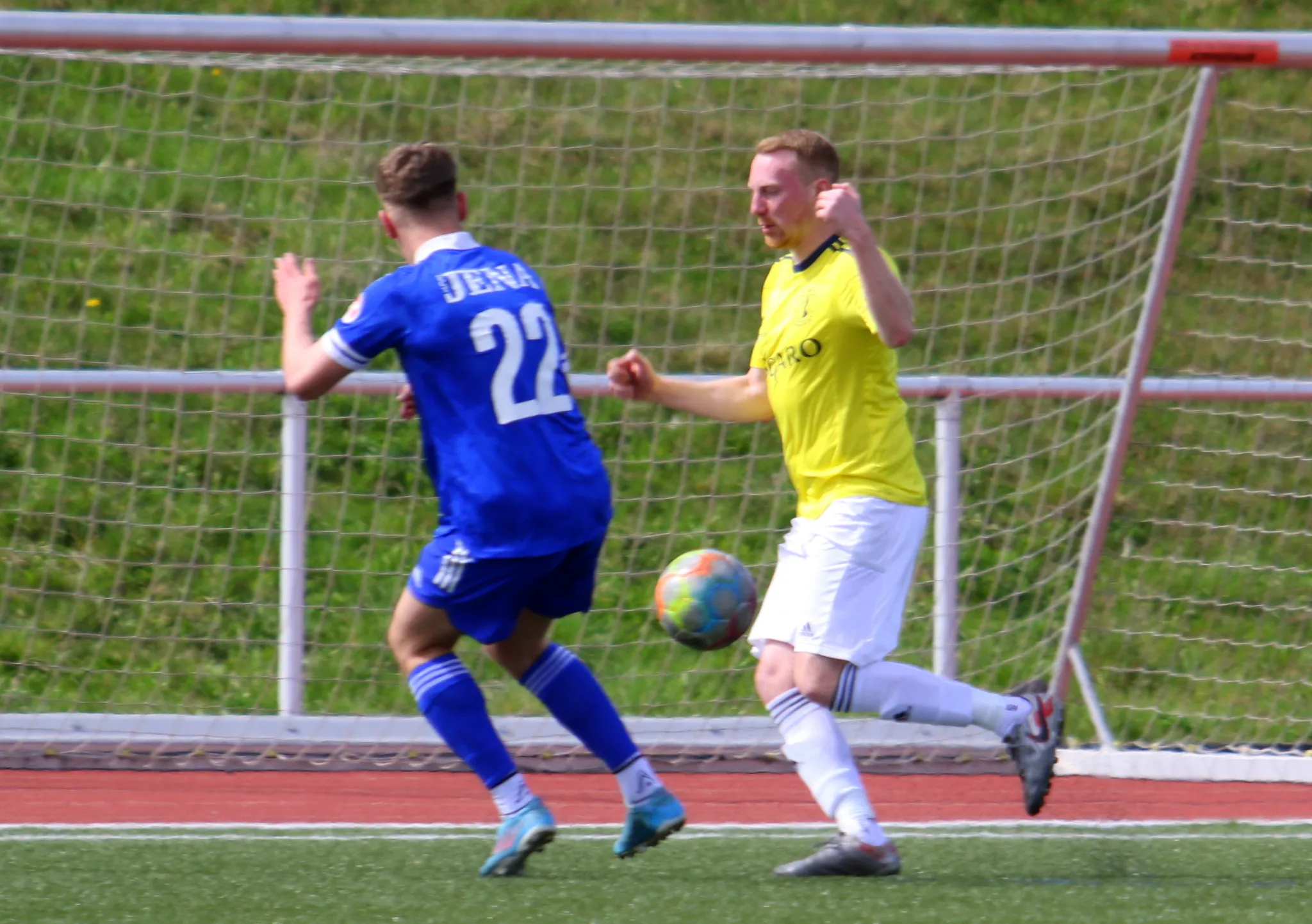 keinen Druck auf den Ball und Felix Fink im Jenaer Tor konnte leicht aufnehmen (40.).