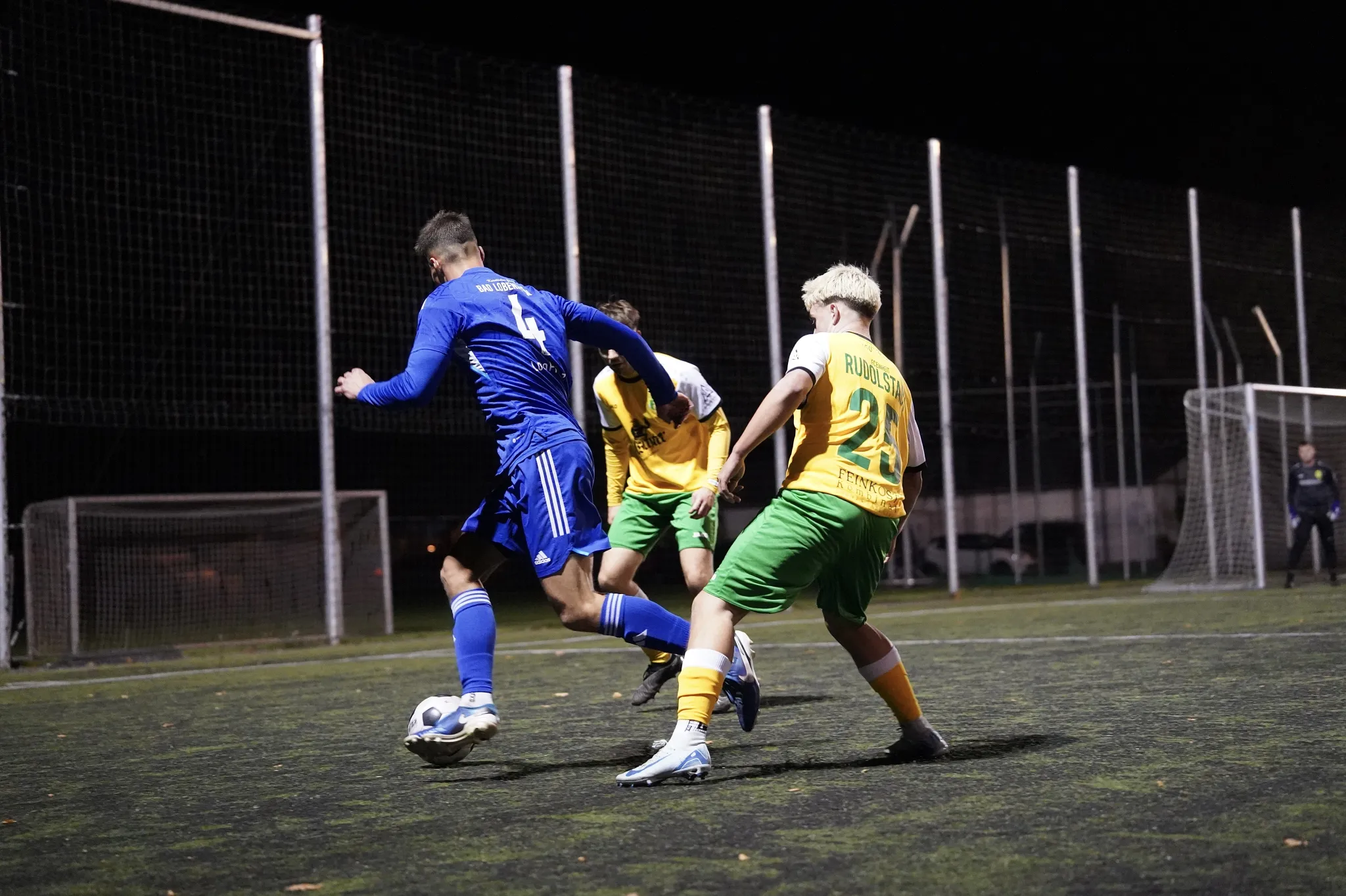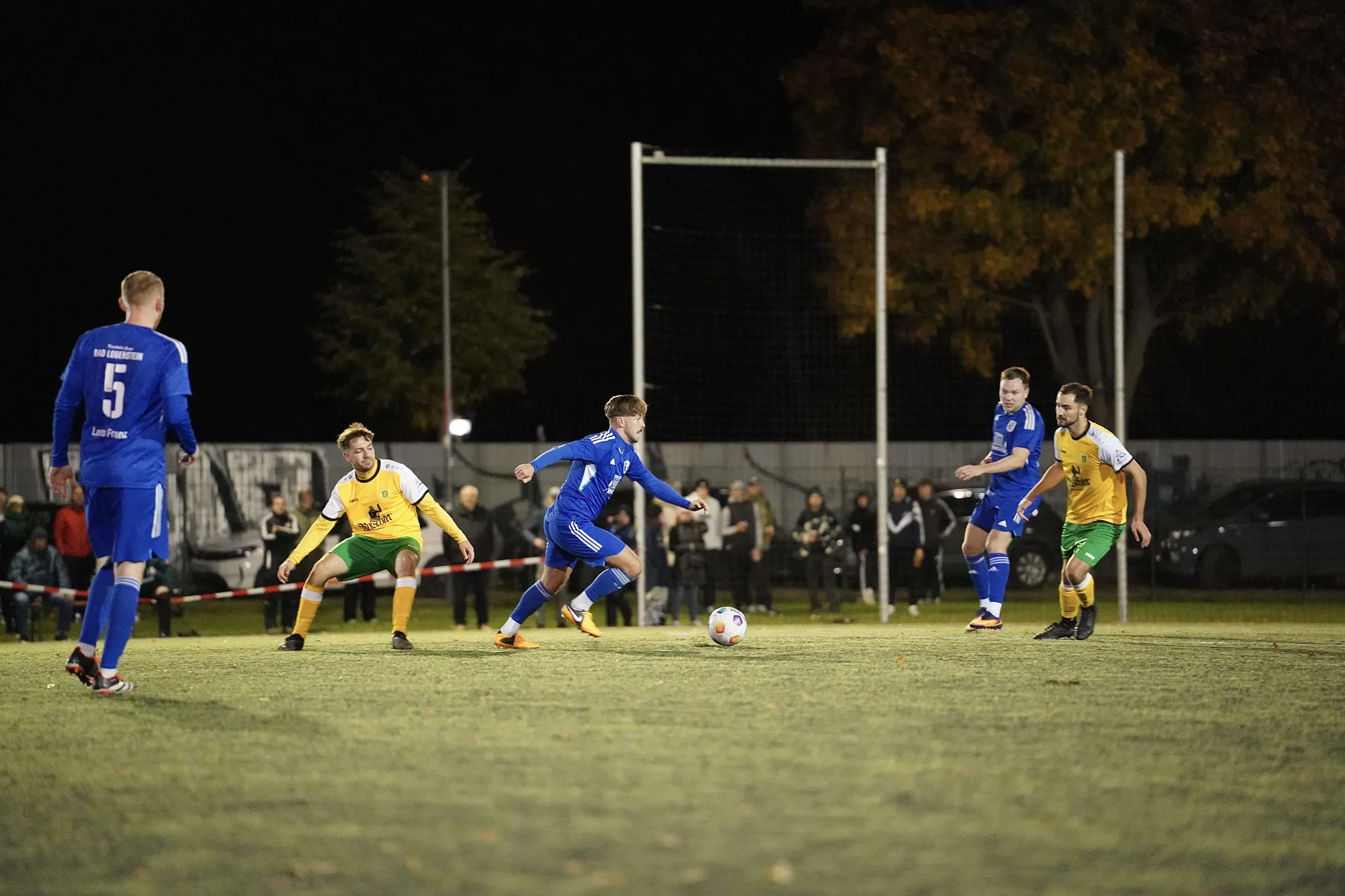 Es entwickelte sich unter Flutlicht von Beginn ein intensives Spiel mit hohem Tempo. Doch beide Mannschaften hatten in den ersten 35 Minuten Schwierigkeiten, sich Torchancen herauszuarbeiten. Dafür fehlte auf beiden Seiten im letzten Drittel die Passgenauigkeit, doch dies sollte sich in den letzten zehn Minuten vor dem Seitenwechsel ändern. Nun spielten die Koseltaler konsequenter vor dem gegnerischen Gehäuse und wurden in der 36. Spielminute auch prompt mit der Führung belohnt. Nach einer unübersichtlichen Aktion im gegnerischen Strafraum legte Janek Köcher den Ball mustergültig auf Tom Becker und dieser vollendete mit strammen Schuss zur nicht unverdienten Führung. Danach entwickelten die Gäste deutlich mehr zug zum Tor und kurz vor der Pause hatten sie noch die Chance zum 0:2. Nach schöner Vorlage von Markus Baer schloss Sebastian Mai mit einem guten Torschuss ab, doch der Keeper der Gastgeber konnte mit einer Glanzparade zur Ecke klären. Somit blieb es bei der knappen Führung zur Halbzeit.