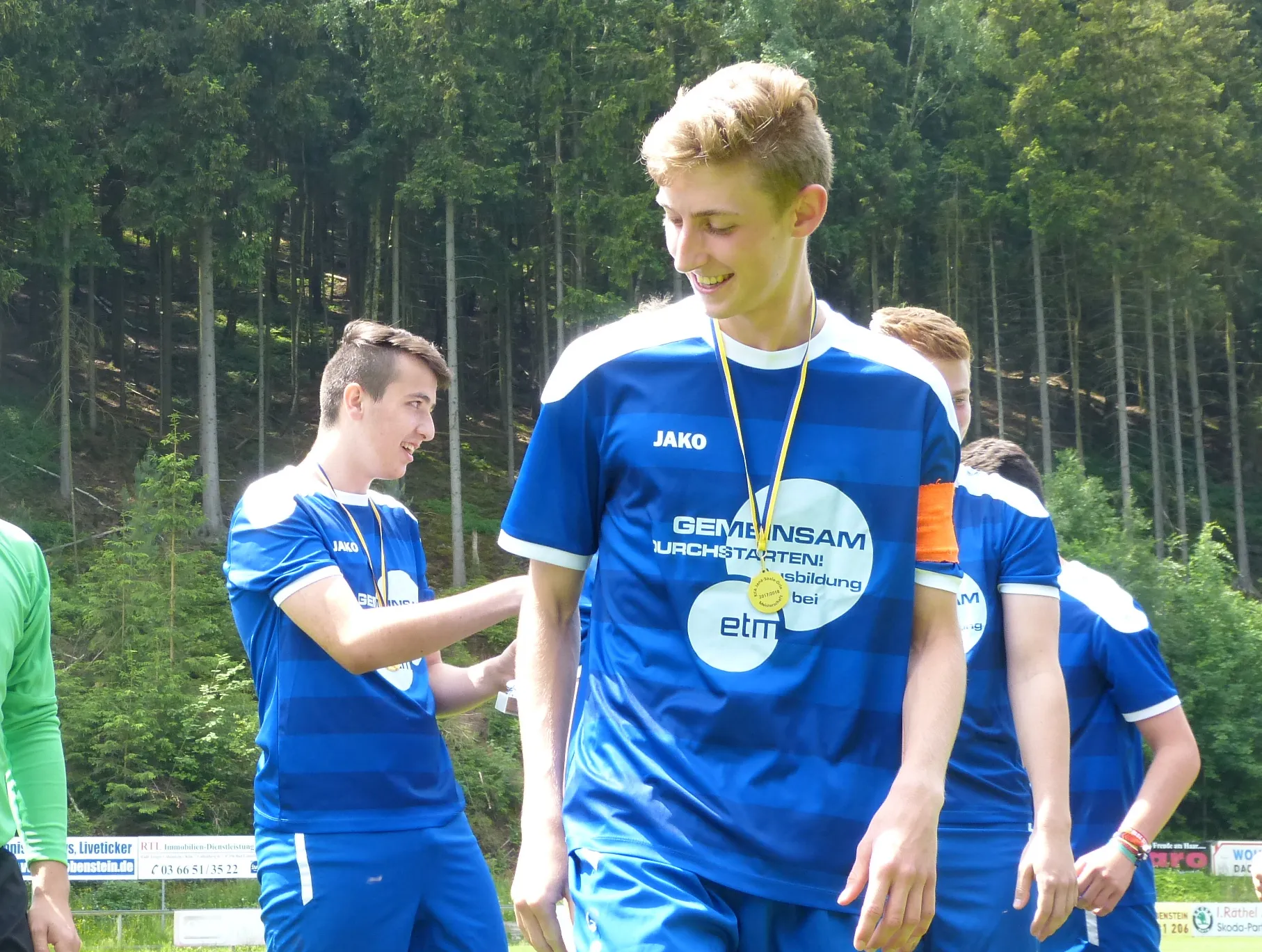 Da der Gegner Thüringen Jena im letzten Saisonspiel nicht antrat, gewinnen die A Junioren der Spielgemeinschaft FSV Schleiz und VfR Bad Lobenstein die Meisterschaft im Koseltal ohne die Zuschauer Fans sowie ihre beiden Trainer Saß und Sell noch ein letztes mal von ihrem Können zu überzeugen und noch ein letztes mal als SG die nun schon in der zweiten Saison als Meister der Kreisoberliga überzeugen konnte, abzutreten. Trotz dieses Wehrmutstropfens und dem noch nicht ganz überwundenen unglücklichen Scheiterns im Pokalfinale, waren diese zwei Jahre für alle Beteiligten eine überaus fruchtbare und bereichernde Zeit. Die Jungs und ihre Trainer haben für alle beiden Vereine aber auch für das Umfeld ein Zeichen gesetzt, und konnten zeigen wie erfolgreich und wie gut und vor allem auf Augenhöhe eine Spielgemeinschaft im Oberland funktionieren Kann. Dies wurde auch noch einmal von Spfr. Siegfried Franz, der im Namen des VfR Vorstandes zur Mannschaft sprach, deutlich gemacht. Auch Spfr.Rene Richter, der die Ehrung im Namen des KFA Jena Saale Orla durchführte lobte die hervorragende Zusammenarbeit beider Vereine die einen nachhaltigen Einfluss auf das zukünftige Potential den Männerbereich beider Vereine haben wird.