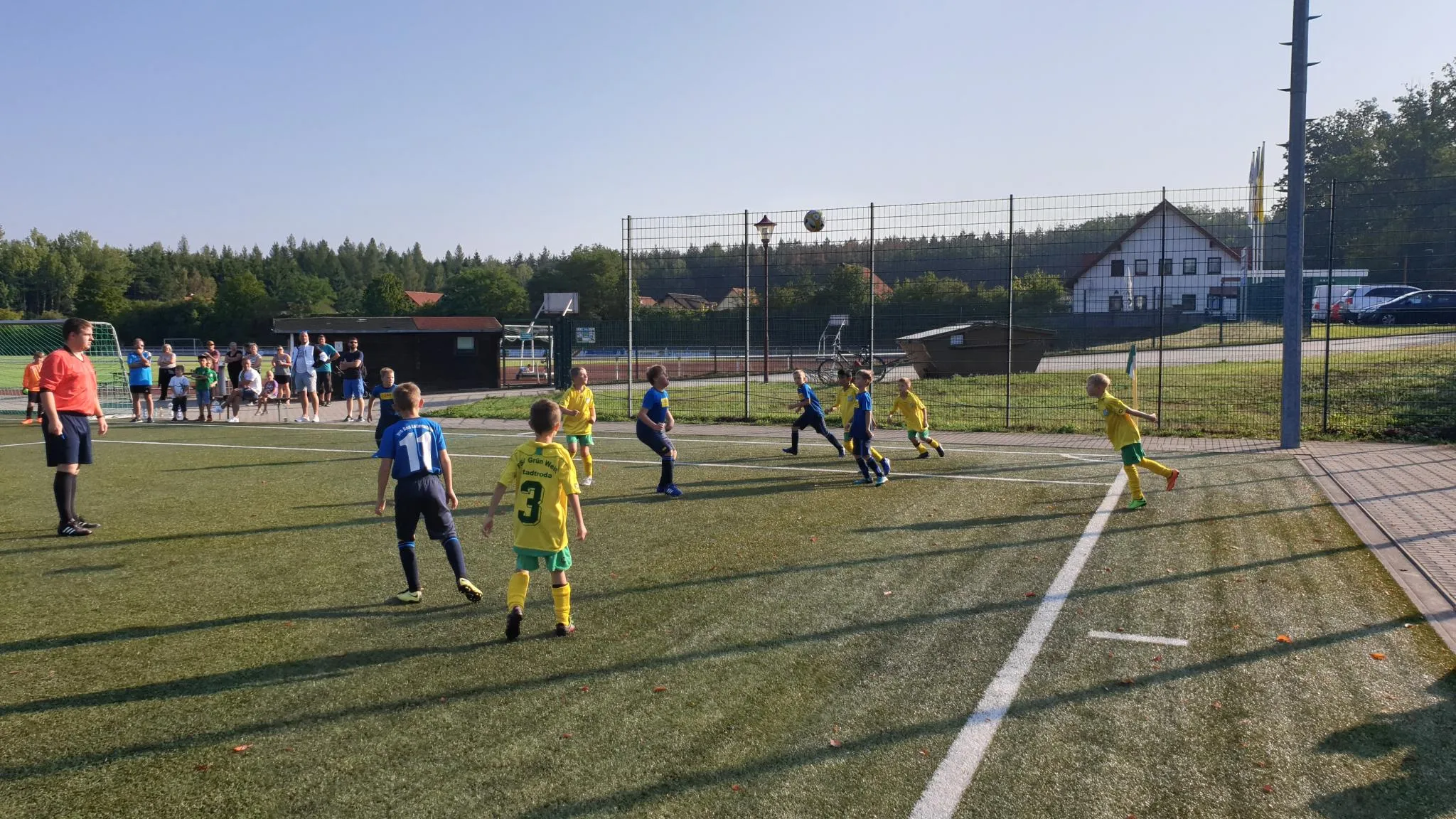 Nach der deutlichen Niederlage zum Saisonauftakt, zeigte die E2 eine gute Reaktion und konnte im Spiel gegen Stadtroda überzeugen. Von Beginn an übernahmen die Jungs vom VfR das Zepter und erspielten sich ein Chancenplus. In der 11. Minute war es dann so weit, Freistoß durch Fabien von der rechten Seite auf den langen Pfosten, dort stand Leon Pasold goldrichtig und netzte zum 0:1 ein. 5 Minuten später setzt sich Phil schön über rechts durch, legt für Fabien auf - 0:2. Kurz darauf die erste zwingende Chance für die Gastgeber, doch Felix war zur Stelle. Anschließend kam durch schöne Vorarbeit von Adrian Leon frei vorm Tor zum Schuss, ließ die Chance aber liegen. Mit dem Pausenpfiff dann der Anschlusstreffer durch Stadtroda, der für einiges an Nervosität nach dem Seitenwechsel sorgen sollte. Die Gastgeber kamen besser aus der Pause und die Jungs vom VfR luden den Gegner mit überflüssigen Abspielfehlern ein. So wurde innerhalb der ersten Minuten die 1:2-Führung verspielt und man lag plötzlich 3:2 hinten. Doch die E2 zeigte eine starke Reaktion und glich durch Leon nach super Zuspiel von Fabien zum 3:3 aus. Anschließend boten beide Teams eine eher zerfahrene Partie. 5 Minuten vor Abpfiff der regulären Spielzeit setzte sich Phil sehr gut über rechts durch, sein Schuss kommt über den Pfosten zum freistehenden Louis Grüner, der nur noch einschieben musste. Danach wurden durch Louis, Maxi, Phil und Fabien noch einige gute Chancen liegengelassen.