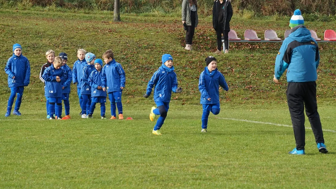 Am gestrigen Tag führte uns der Weg nach Remptendorf zum Auswärtsspiel beim befreundeten FSV. Beide Mannschaften kennen sich bereits gut von bzw. aus verschiedenen Freundschaftsspielen, Turnieren und auch einer gemeinsamen (Hallen-) Trainingseinheit. Leider hielt der anfängliche Sonnenschein nicht durch und so fand das Spiel unter doch recht widrigen äußeren Bedingungen (Dauernieselregen, Kälte, stark böiger Wind...) auf dem Remptendorfer Sportplatz statt. Trotzdem hatten es sich zahlreiche Eltern und Angehörige der Spieler*innen beider Mannschaften nicht nehmen lassen, diese lautstark beim "Derby" zu unterstützen. Das Spiel stand unter der Leitung von Schiedsrichter N. Lemnitzer, welches dieser über die gesamte Dauer konsequent und souverän leitete. Remptendorf spielte zuerst mit dem starken Wind im Rücken und man merkte, dass sie diese Unterstützung gleich von Beginn an ausnutzen wollten. So schlugen sie immer wieder lange Bälle in Richtung des nach langer Pause wieder von Ben gehüteten VfR-Tores. Auch gefährliche Fernschüsse sollten schnell zum ersten Tor führen. Trotzdem war es leider ein VfR-Spieler, der in der 2. Minute das 1:0 für Remptendorf erzielte. Nach einem Abstoß von Ben zu Moritz ließ sich dieser von einem heranstürmenden FSV-Angreifer irritieren und schob den Ball in das eigene Tor. Davon ließen wir uns aber nicht beeindrucken, bewiesen tolle Moral und spielten weiter guten Fußball. So kam es zu einem spannenden Schlagabtausch und einem Spiel zwischen zwei zu diesem Zeitpunkt gleichwertigen Mannschaften. In der 8. Minute war es dann unser Kapitän Lenny, der sich über halbrechts durchsetzte und im Nachschuss zum vielumjubelten 1:1 einnetzte. Im Gegenzug konnte sich dann Ben gleich 2mal kurz nacheinander auszeichnen, als er zuerst einen gefährlichen und noch aufsetzenden Fernschuss überragend hielt und danach einen Freistoß noch mit den Fingerspitzen an den Pfosten lenkte-den hält nicht jeder!!! Im Gegenzug ein Foul am durchgebrochenen Lenny. Den anschließenden Freistoß setzt Lenny selbst auf das linke Dreiangel. Auch der FSV hielt dagegen und war vor allem durch Standards, lange Bälle und Fernschüsse brandgefährlich-ein wirklich spannendes und abwechslungsreiches Derby für alle Beteiligten! In der 12. Minute konnte dann der VfR erstmals in Führung gehen. Julian setzte sich gekonnt durch und wurde kurz vor dem Torabschluss gefoult. Den anschließenden Freistoß versenkte Louis gekonnt und unhaltbar im FSV-Tor zum vielumjubelten 1:2. Von nun an drängte Remptendorf noch energischer Richtung VfR-Tor. Wir hielten zwar stark dagegen, konnten aber den verdienten Ausgleich in der 15. Minute nicht verhindern. Nach einem Freistoß bekommen wir den Ball nicht geklärt, ein Remptendorfer Spieler schießt, Gabriel versucht noch zu retten in dem er in den Schuss grätscht und Ben hat keine Chance - 2:2. Zwei Minuten später fällt dann das 3:2 für Remptendorf durch einen überragenden und unhaltbaren Fernschuss direkt unter die Latte. Mit diesem Ergebnis ging es dann auch in die Halbzeitpause. Für die zweite Hälfte nahmen wir uns vor, noch energischer in die Zweikämpfe zu gehen und mit Windunterstützung mindestens den Ausgleich, wenn nicht noch mehr zu schaffen! Aber auch der FSV kam hochmotiviert aus der Kabine und hatte vom Anstoß weg, sofort 2 große Chancen durch gefährliche Schüsse, die aber gekonnt von Ben gehalten wurden. Danach setzt Lenny in der 26. Minute einen Fernschuss knapp neben das Tor. In der 29. Minute zielt er dann genauer und versenkt den Ball mit einem straffen Schuss zum 3:3 Ausgleich. Direkt im Anschluss hat Remptendorf eine Riesenchance zur erneuten Führung. Doch Ben nimmt dem durchgebrochenen und allein auf ihn zulaufenden Angreifer in überragender Manier noch den Ball vom Fuß-Großartig! Im Gegenzug zeigte dann der Schlussmann vom FSV sein ganzes Können, als er den starken Schuss von Jamie noch zur Ecke lenken konnte. Zu diesem Zeitpunkt wieder ein offenes Spiel mit Chancen auf beiden Seiten. Die Zuschauer bekamen einiges geboten. Doch langsam aber sicher konnten wir ein leichtes Übergewicht erzielen und belohnten uns in der 31. Minute mit dem 3:4. Ein Abwehrspieler des FSV klärt den Ball, diesen nimmt Louis direkt und knallt ihn unhaltbar unter die Latte, ein tolles Tor! Gleich 2 Minuten später setzt wiederum Louis einen Schuss knapp rechts am Remptendorfer Tor vorbei. Danach wird ein Schuss von Lenny noch zur Ecke abgeblockt. Diese wird zuerst geklärt, der Ball kommt zu Jule, diese legt quer zu Jamie und dieser erzielt das 3:5. Kurz danach hat er sogar noch die Chance auf seinen zweiten Treffer. Julian erobert sich den Ball, legt quer durch auf den freien Jamie und dessen Schuss geht knapp links vorbei. In der Schlussminute ist es dann Louis, der seine tolle Leistung mit einem unhaltbaren Flachschuss zum 3:6 Endstand gegen eine starke, sich nie aufgebende und jederzeit faire Remptendorfer Mannschaft krönt. Allgemein lässt sich feststellen, dass wir uns in allen Mannschaftsteilen mit Fortdauer des Spiels immer mehr steigerten, besser die Zweikämpfe annahmen, mehr Chancen herausspielten und so letztendlich als verdienter Sieger den Platz verlassen durften. Aus dieser starken und geschlossenen Mannschaftsleistung ragte unser Torhüter Ben doch noch etwas hervor, als er nach langer Pause wieder in unser Tor zurückkehrte und mit seinen teils überragenden Paraden letztendlich der Garant für diesen Auswärtssieg war! An diese Leistung wollen wir im nächsten und letzten (Heim-) Spiel in Ebersdorf anknüpfen und uns mit einem Erfolgserlebnis in die verdiente Winterpause verabschieden!