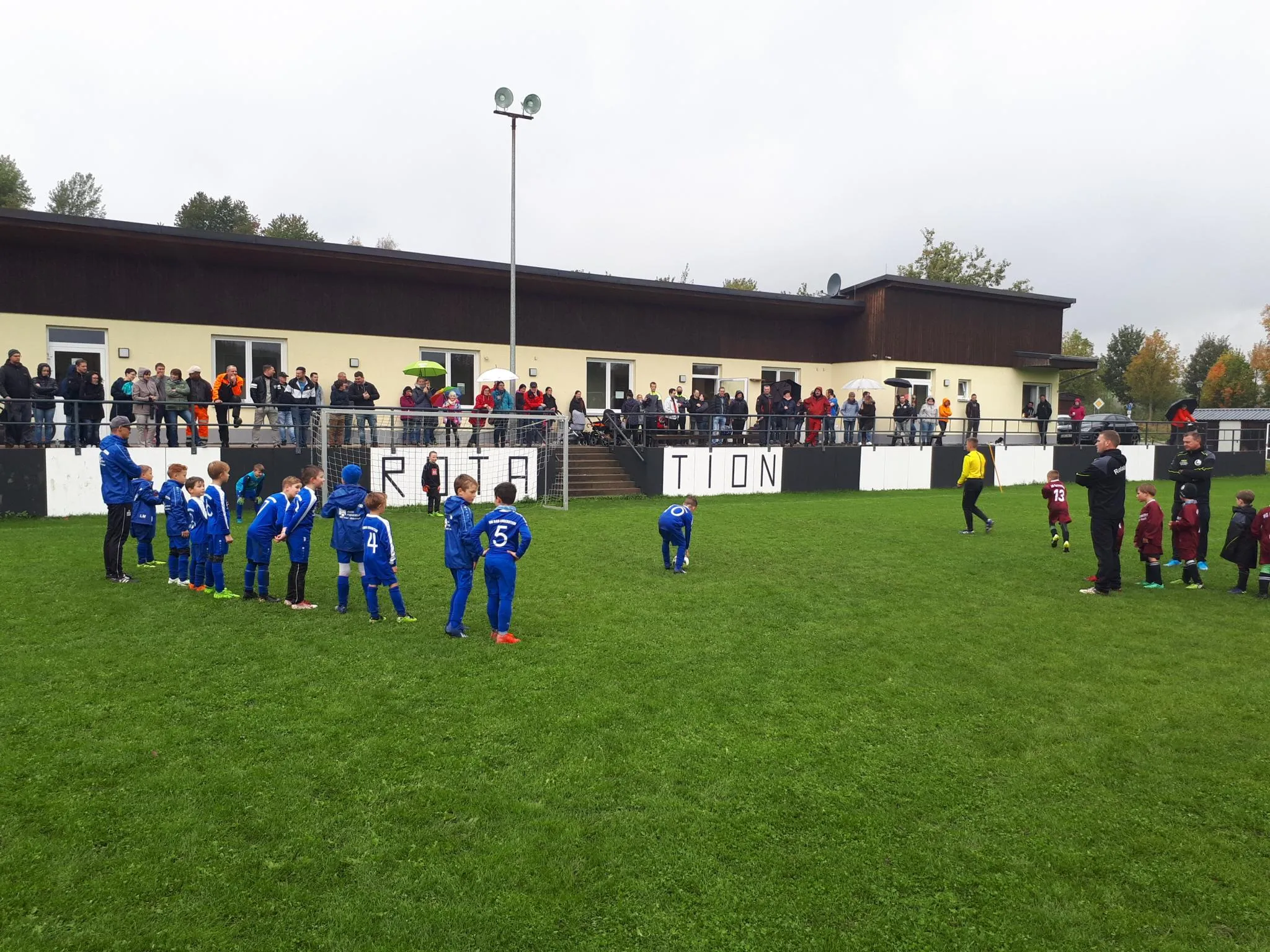 Unter den Augen zahlreicher Zuschauer und wiederum bei bestem Derbywetter (13 Grad und leichter Regen) trafen heute in Harra die F-Junioren-Mannschaften der SG Rotation Rosenthal und des VfR Bad Lobenstein aufeinander. Schnell merkte man, dass es sich bei den Gastgebern um die vermutlich jüngste Mannschaft der Staffel handelt. Weiterhin waren sie auch zum Großteil den Kickern des VfR körperlich unterlegen, so dass am Ende ein klarer und deutlicher Auswärtssieg zu Buche stand. Trotzdem gaben sich die Spieler der SG nie auf, stemmten sich gegen die Niederlage und waren dabei immer faire Sportsmänner ! Angereist mit 12 VfR-Spielern nutzten die Trainer die Gelegenheit auch den jüngeren bzw. kleineren Spielern mehr Spielpraxis zu geben. Um es vorweg zu nehmen. Diese zahlten das Vertrauen mehr als zurück und zeigten, was in ihnen steckt. Mit Anpfiff waren wir sofort spielbestimmend und setzten die Spieler der SG Rotation gleich unter Druck. So war es zwangsläufig, dass bereits in der 2. Minute das erste Tor durch Jamie fiel. Weitere Chancen verpufften in der vielbeinigen Abwehr des Gegners oder wurden durch den guten Gästetorhüter zu nichte gemacht. In der 6. Minute war es dann trotzdem soweit, Louis erzielt das 0:2 und kurz danach Lenny mit einem Doppelschlag das 0:4. Danach ist es Jule, die nach einer Ecke gekonnt zum 0:5 einnetzt, bevor Lenny kurz darauf wieder an der Reihe ist und zum 0:6 trifft. Anschließend ließen wir einige Großchancen ungenutzt, ehe Jule mit einem Doppelschlag den 0:8 Halbzeitstand herstellt. In der Halbzeitpause gab es für die Trainer nichts zu bemängeln, ausser der Vorgabe, weiter konzentriert zu bleiben und schönen Mannschaftsfußball zu spielen. Das gelang uns auch sehr gut und man merkte weiterhin, dass die Kräfte des Gegners mehr und mehr schwanden. So konnten wir bis zum Spielschluss das Ergebnis auf 0:19 in die Höhe schrauben. Anzumerken sind hier noch die ersten Saisontreffer unseres etatmäßigen Torhüters Ben, der in der zweiten Halbzeit im Mittelfeld sein fussballerisches Können zeigen durfte, sowie von Henry, dem es vorbehalten war, in der 39. Minute den letzten Treffer im Spiel zu erzielen. Die weiteren Tore verteilten sich wie folgt: Jule (2), Jamie (5), Lenny (1), Julian (1). Schiedsrichter Lemnitzer war ein souveräner Leiter der Partie.