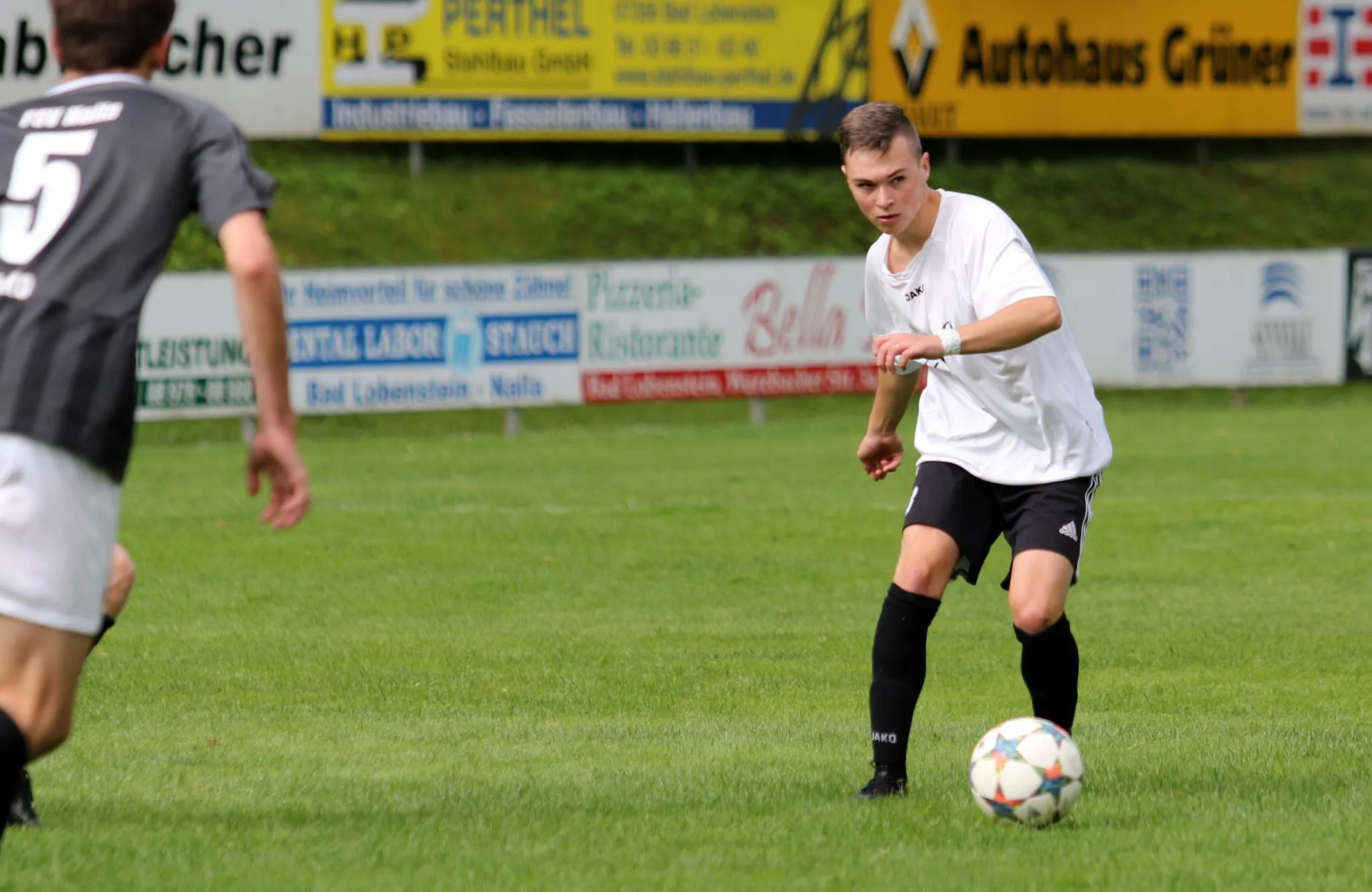 Eine Woche vor Punktspielstart sollte das Spiel gegen den FSV Naila die Generalprobe werden. Leider wurde nichts daraus, da Spieler zu den Männermannschaften abgestellt werden mussten. So musste das Trainergespann sich etwas einfallen lassen,denn zu den Abstellungen kamen auch im A Bereich Verletzungen hinzu , die auch respektiert werden müssen. Das heißt, dass jede Mannschaft einen spielfähigen Kader am Spieltag haben muss. Egal ob Test oder Punktspiel, dies sollte jeden klar sein. Trotzdem boten alle Jungs gegen einen fairen und guten Gegner aus Naila eine gute Partie. Mit Lex Meyer, der Keeper ist und Hans Kaiser , der sein erstes Spiel als B Spieler im A Bereich machte, war alles ausgeschöpft was die Trainer hatten. Von Beginn an war es ein Spiel zweier gleichwertiger Mannschaften. Mit leichten Chancenvorteilen für das Heimteam. Trotzdem gingen die Gäste durch einen berechtigten Elfmeter in Führung. (8). Zwei Minuten später brachte Scholz Pech in Super Schussposition, die er auch zum Ausgleich nutzen konnte. Danach hatten besonders der sehr agile Brüning und Meyer Riesengelegenheiten, die leider leichtfertig vergeben(13,18,38). Nach der Pause nutzte wieder Pech einen großen Fehler der Gäste eiskalt aus(51). Nach guten Zuspiel von Anders erhöhte Meyer auf 3:1. Doch auch auf Seiten der Gastgeber kamen große Fehler im Defensivbereich hinzu. So kamen die Oberfranken durch solche Fehler zu zwei Toren(70,75). Zwar hatten beide Teams noch Möglichkeiten das Spiel zu gewinnen,doch am Ende war es ein gerechtes Unentschieden, bei dem jeder Spieler sein bestes gab . Weiterhin muss noch erwähnt werden,dass der junge Schiedsrichter Köhler aus Tanna sein erstes Großfeldspiel leitete und das überragend absolvierte. Wie er mit den Spielern sprach und pfiff ist aller Ehren wert. Solche Schiedsrichter brauchen wir mehr!