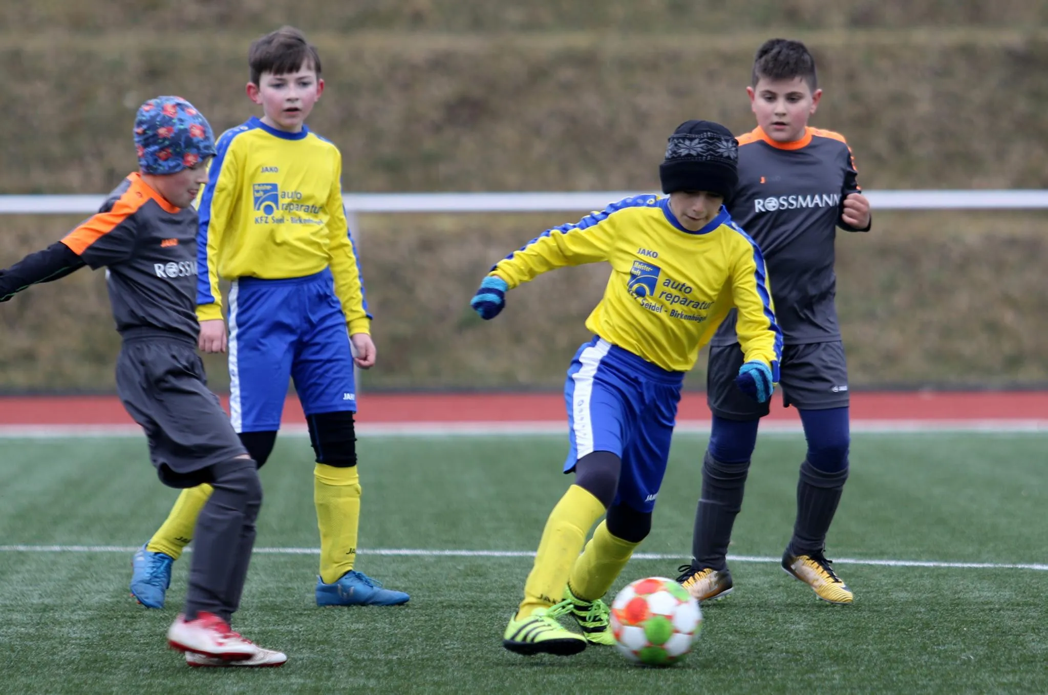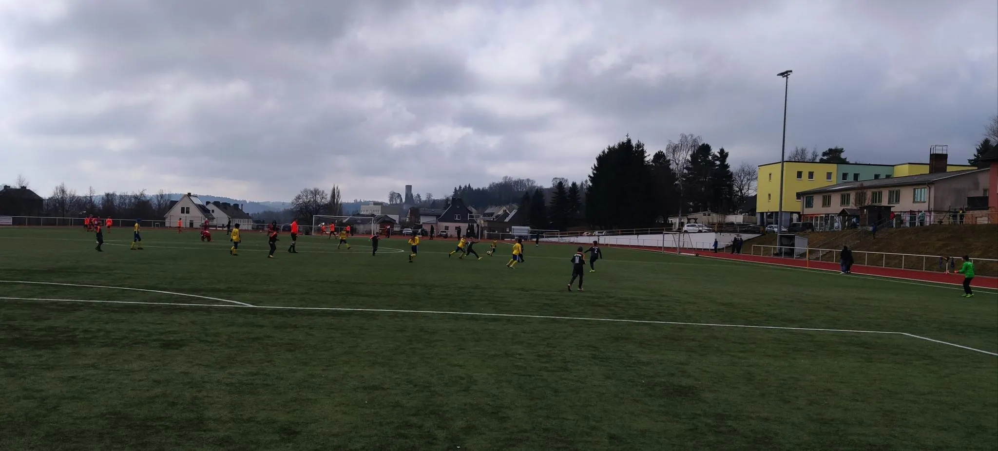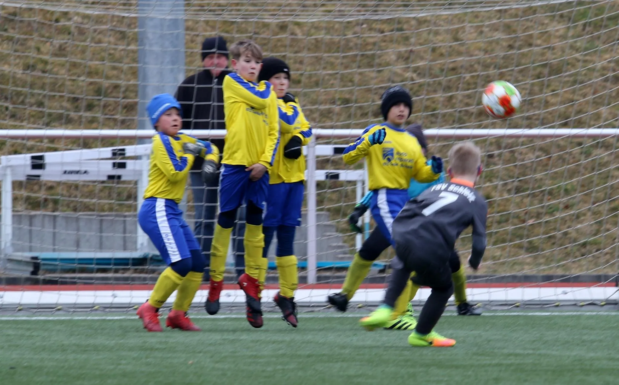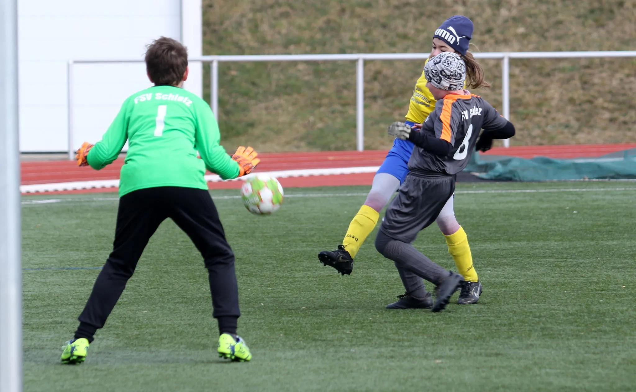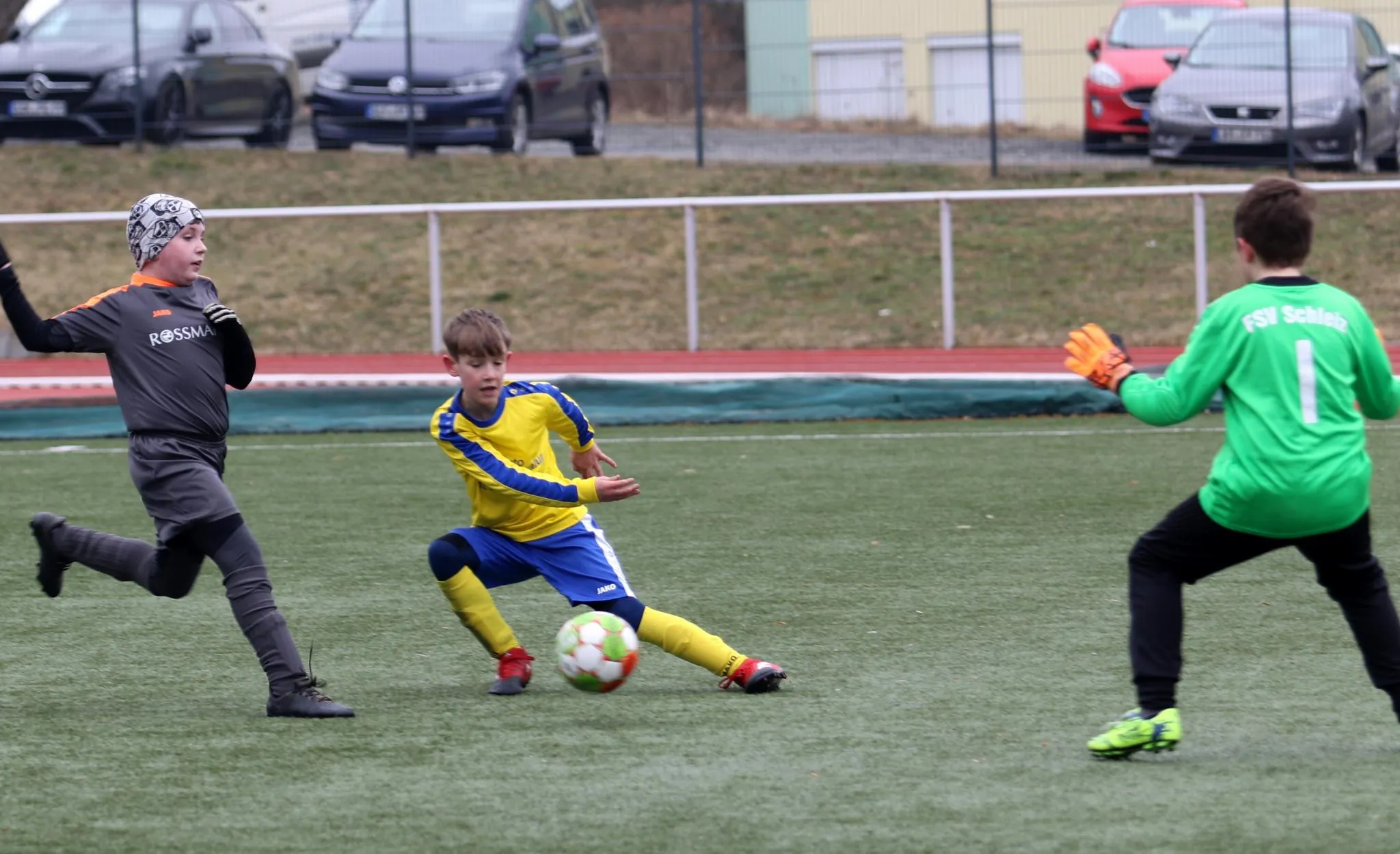 Nachdem das für letzte Woche angesetzte Punktspiel aufgrund zahlreicher Erkrankungen auf Ebersdorfer Seite kurzfristig ausfallen musste, stand für die E-Junioren des VfR nun am heutigen Tag die Mannschaft des FSV Schleiz als Gegner auf dem Kunstrasenplatz in der Poststraße. Zog man vor 14 Tagen in einem Testspiel gegen die selbe Mannschaft noch den Kürzeren, gelang uns diesmal die Revanche. Gegen eine leicht ersatzgeschwächte Schleizer "Acht" begannen wir sehr energisch und Louis hatte bereits in der 4. Minute die Führung auf den Fuß, doch er zielte etwas zu hoch. Die Abwehr um Moritz, Hannes und Simon ließ kaum einen Gegner durch bzw. eine Chance zu, so dass Gabriel im Tor nicht groß einzugreifen brauchte. Ein Freistoß aus aussichtsreicher zentraler Position war dann nach 8 Minuten eine richtig gute Möglichkeit für Schleiz, zum Glück ging der Schuss über das Tor. Kurz darauf gelang Jamie dann mit einer klasse Einzelaktion das erhoffte frühe Führungstor. Das gab natürlich zusätzliche Sicherheit, so dass es uns immer wieder gelang, spielerisch durch das Mittelfeld um Louis, Jamie und Ben zu kombinieren und auch Karim in der Spitze in Szene zu setzen. Nachdem Louis, Karim und Ben weitere große Chancen nur knapp nicht nutzen konnten, hatten wir dann im Gegenzug riesen Glück, als der straffe Schuss eines Schleizer Spielers an die Latte "unseres" Tores krachte. Das hätte durchaus der Ausgleich sein können ! Kurz vor dem Halbzeitpfiff sprintete Jamie in einen Querpass der Schleizer Abwehr, schnappte sich die Kugel und versenkte diese unhaltbar zum 2:0. In der Pause nahmen wir uns vor, weiter konzentriert zu spielen und möglichst keine Chancen mehr zuzulassen. Die für Simon zur Halbzeit eingewechselte Jule fügte sich nahtlos in das Spiel ein und sorgte mit mehreren "Durchbrüchen" über die rechte Seite für Gefahr. In der 41. Minute nahm sich der kurz zuvor für Karim eingewechselte Julian ein Herz, dribbelte einen Gegenspieler aus und versenkte mit einem straffen Schuss den Ball zum 3:0 im Schleizer Tor. Kurz danach startete der für Ben ins Spiel gekommene Hans ein unwiderstehliches Solo, legte quer auf Jamie und dieser zielte zu genau, so dass der Ball an den Pfosten klatschte. In der 46. Minute gab es dann eine Ecke für uns. Diese trat Louis straff vors Tor und ein Schleizer Abwehrspieler lenkte die Kugel unglücklich und unhaltbar ins eigene Netzt. Auch Paul konnte nach seiner Einwechslung für Louis in der ein oder anderen Aktion zeigen, was er mittlerweile fußballerisch drauf hat. Fast mit dem Schlusspfiff erzielte dann Jamie schließlich in der 50. Minute mit seinem dritten Tor den 5:0 Endstand. Durch diesen Sieg gegen eine immer fair spielende Mannschaft aus Schleiz festigten wir den zweiten Tabellenplatz. Jetzt heisst es im Training ordentlich und konzentriert "Gas zu geben", bevor sich dann am Samstag zum Spitzenspiel der ebenfalls bis dato ungeschlagene Tabellenführer aus Tanna auf dem Sportplatz in der Poststraße zum Kräftemessen vorstellt. Die Kids der E-Junioren hoffen hier natürlich auf zahlreiche Unterstützer am Spielfeldrand :-)