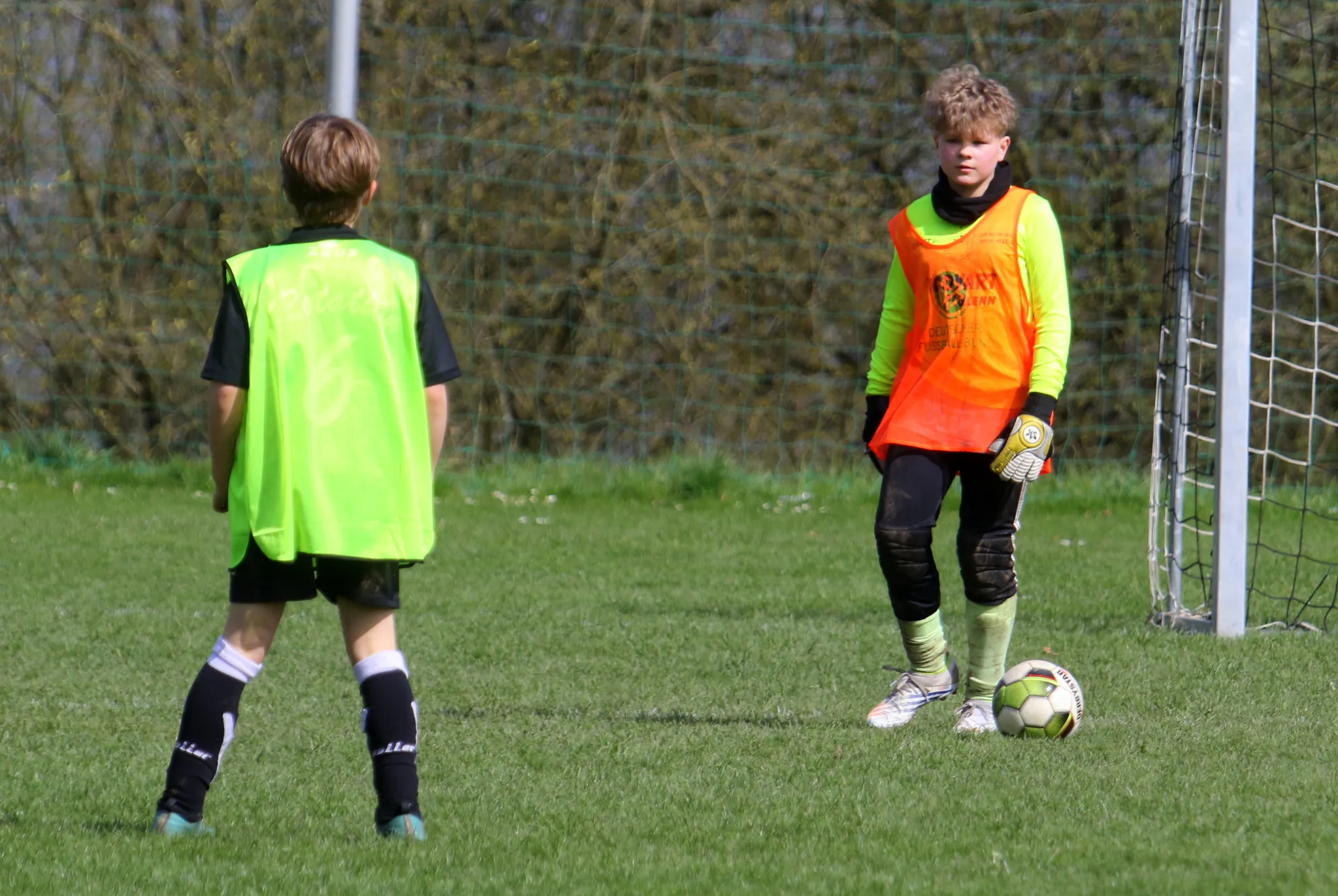 Nach dem erfolgreichen Viertelfinaleinzug im Pokal am vergangenen Sonntag reisten die E-Junioren heute in den Sportpark Harra zum Derby gegen die Kids der Rotation Rosenthal. Trotz einiger Veränderungen in der Aufstellung im Vergleich zur Vorwoche, erspielten wir uns von Beginn an eine Überlegenheit, welche auch über die gesamte Spielzeit anhalten sollte. Immer wieder kombinierten wir uns durch die gegenerischen Reihen und erspielten uns so zahlreiche Torchancen, die wir regelmäßig in Tore gegen die aufopferungsvoll kämpfenden und sich nie aufgebenden "Rosenthaler" umwandeln konnten. Die Vorgaben der Trainer wurden sehr gut umgesetzt und so fielen die Tore nach teils schön vorgetragenen Kombinationen bzw. Pässen unter Beteiligung mehrer Spieler. Auch trugen sich insgesamt 7 verschiedende Spieler bzw. Spielerinnen in die Torschützenliste ein, wobei Hans mit seinen 3 Treffern hier noch herausragte. Und wenn sich die Kids der Rotation einmal durch unsere Reihen spielten, war immer noch der souveräne Hannes zur Stellte, so dass Gabriel im Tor einen sehr ruhigen Samstagvormittag verlebte. Insgesamt eine starke Mannschaftsleistung, die zu einem verdienten und nie gefährderten Derbysieg führte. Schiedsrichter Drogi hatte mit der Partie keinerlei Probleme und leitete souverän und unauffällig. Weiter geht es für uns am nächsten Samstag (Anstoß 9 Uhr) mit dem Kracher im Pokalviertelfinalheimspiel gegen SV Schott Jena II.