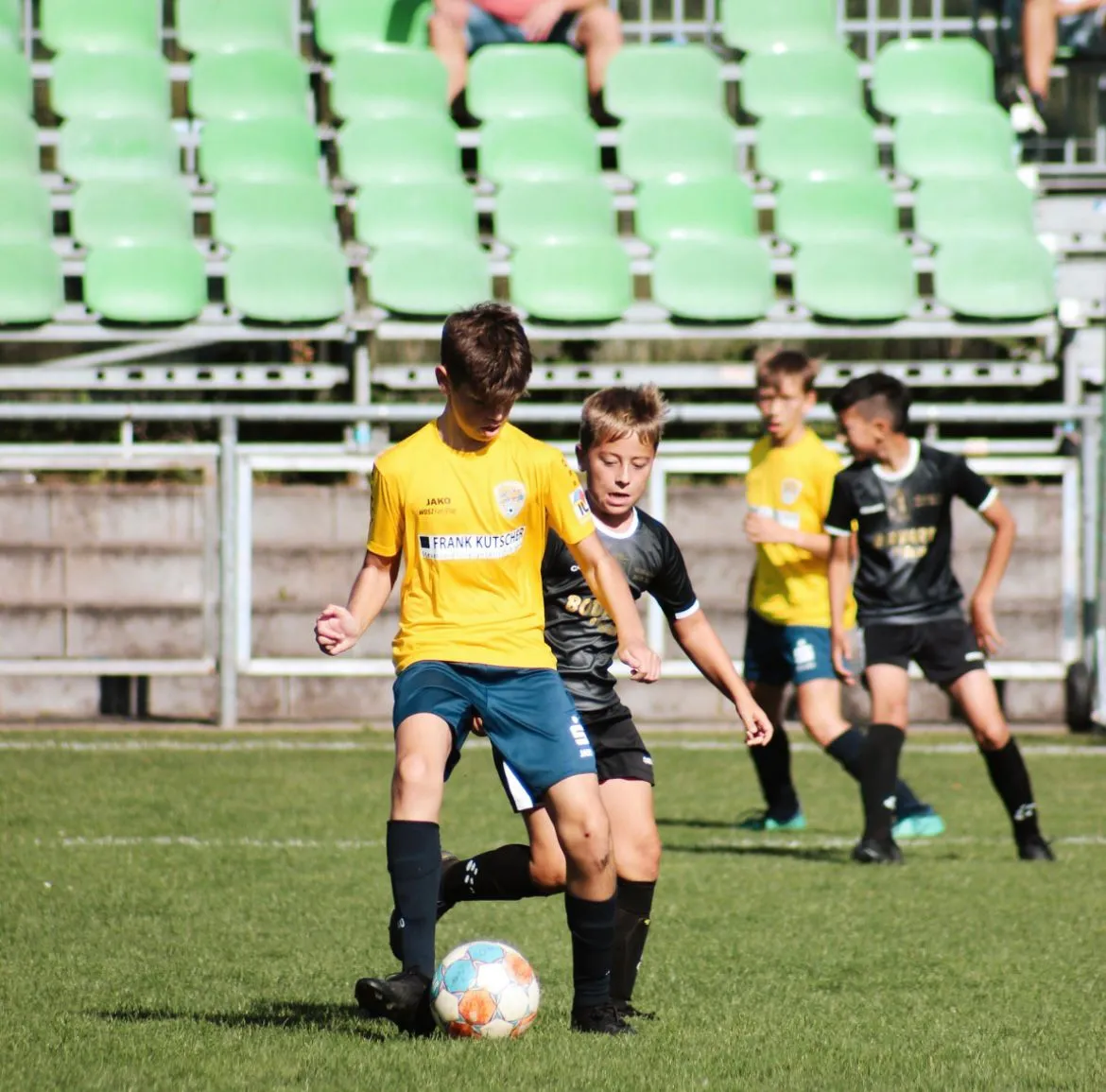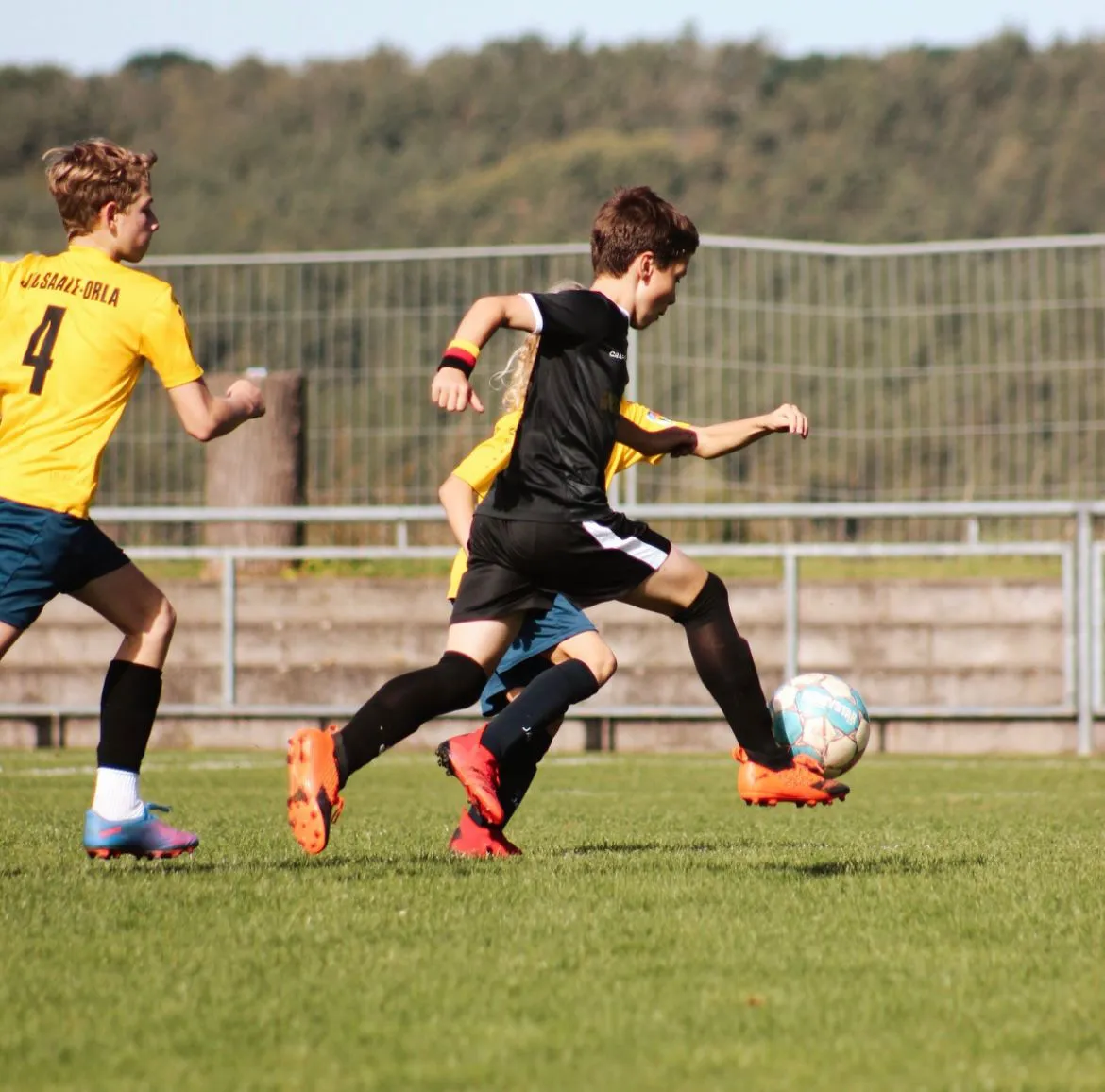 Nach der deutlichen Niederlage im letzten Punktspiel in Bürgel und der starken Leistung im Testspiel gegen den Verbandsligisten SC 1903 Weimar am vergangenen Sonntag, war der heutige Auftritt in Pößneck beim JFC schon eine Art Standortbestimmung. Heute, in der Auswärtspartie bei einem Staffelfavoriten, sollte sich nun zeigen, wo wir derzeit fußballerisch stehen. Mit einer ganz anderen Körpersprache, Einsatz und (Sieges-) Willen gingen wir in diese Partie und waren so auch die ersten Minuten spiebestimmend. Verfehlte Louis mit einem Fernschuss noch knapp das Gehäuse, machte es Leni in der 6. Minute besser und erzielte im Nachsetzen das vielumjubelte 0:1. Danach findet ein lander Ball von Louis Jamie, dieser geht alleine durch und scheitert mit einem straffen Schuss am klasse reagierenden Gästekeeper. In dieser Drangphase von uns erzielte dann der JFC mit einem Sonntagsschuss in den Winkel den 1:1 Ausgleich. Doch blieben wir am Drücker und konnten weitere gefährliche Angriffe vortragen, welche aber nicht zum (Tor-) Erfolg führten, so dass es mit einem Unentschieden in die Halbzeit ging. Hier nahmen wir uns vor, auch nicht nur ein Prozent nachzulassen und weiter als Mannschaft und vor allem mit vollem Einsatz zu spielen. Das gelang uns auch eindrucksvoll und Julian konnte 5 Minuten nach Wiederanpfiff das 1:2 erzielen. Kurz danach hat Jamie die Riesenchance für ein weiteres Tor, doch sein Schuss in Richtung langes Eck wird noch ganz knapp zur Ecke abgelenkt. Auch sein Kopfball kurz darauf, streicht nur haarscharf am langen Pfosten vorbei. Doch welche starken Spieler der JFC in seinen Reihen hat, zeigte sich direkt danach. Eine tolle Kombination krönten sie mit dem sehenswerten Ausgleich. Ab jetzt war es ein offener Schlagabtausch zwischen zwei ebenbürtigen Mannschaften, die sich nichts schenkten. Hans, als jüngster Spieler auf dem Platz, war es dann vorbehalten, in der 46. Minute wiederum das dritte Mal für uns eine Führung "herauszuschießen". Nun warfen wir alles in die Wagschale und waren kurz davor, alle 3 Punkte von "der Warte" zu entführen. Lenny traf sogar kurze Zeit später mit einem klasse getretenen Freistoß noch die Latte des gegnerischen Tores. Das wäre sicherlich die Vorentscheidung gewesen ! So blieben die Kids des JFC im Spiel und konnten 2 Minuten vor Schluss nach einem unwiderstehlichen Angriff und einer cleveren Aktion des Stürmers, wiederum den Ausgleich und letztendlich auch verdienten Endstand erzielen. So nahmen wir nach einer super Leistung und deutlichen Steigerung zum Bürgelspiel einen hochverdienten Punkt aus Pößneck mit zurück ins Koseltal. Darauf können wir definitv aufbauen und wissen nun, dass wir uns auch vor Spitzenteams der Kreisoberliga nicht zu verstecken brauchen. Weiter geht es am kommenden Montag mit dem Pokalspiel und Derby in Harra gegen die Kids der Rotation Rosenthal. Hier hoffen wir auf zahlreiche und lautstarke Unterstützung von den Rängen ! Zuletzt geht unser Gruß, verbunden mit den allerbesten Genesungswünschen an Fabi, der sich leider am vergangenen Sonntag im Testspiel gegen Weimar verletzte. Den Punkt heute haben wir auch besonders für Dich geholt. Komm bald wieder zurück auf den Platz, wir brauchen Dich !
