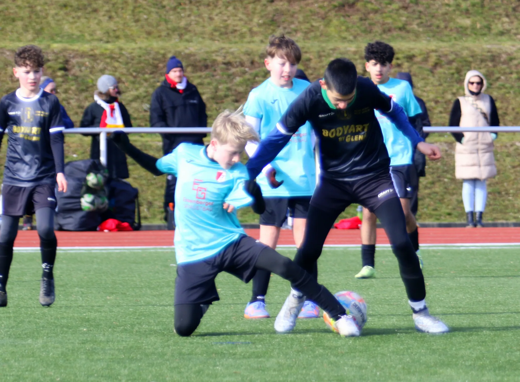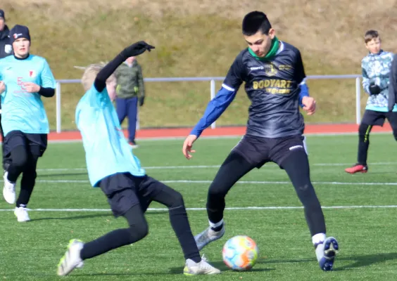 Nach einer sehr erfolgreichen und langen Hallenturniersaison, ging es am gestrigen Samstag für die D-Junioren des VfR wieder raus auf den (Kunst-) Rasen zum "Kampf" um die 3 Punkte beim Rückrundenauftakt im Heimspiel gegen die Kids des SV Lobeda 77. Bei bestem Fußballwetter und sehr guten Bedingungen entwickelte sich von Anfang an eine sehenswerte und zum Schluß hin auch nervenaufreibende Partie zwischen zwei spielstarken Mannschaften. Lobeda erwischte dabei den besseren Start und hätte direkt nach dem Anstoß, nach einem langen Pass, fast die 0:1 Führung erzielt. Doch Ben war hellwach und parierte stark. Unsere Antwort hatte dann Jamie in der 4. Minute parat, als auch er alleine auf den Torhüter zulief, doch den Ball knapp am rechten Pfosten vorbeispitzelte. Dann war wieder Lobeda an der Reihe, ein gefährlicher Fernschuss strich in der 7. Minute nur ganz knapp über unsere Torlatte. In der 10. Minute war es dann doch passiert. Wir können einen straff geschossenen Freistoß nicht richtig klären, ein Lobedaer Angreifer setzt gedankenschnell nach und erzielt in der 10. Minute die verdiente Führung für unseren Gast. Danach hatten die Kids aus Jena auch weiter die größeren Spielanteile und wir konnten uns bei Ben bedanken, der uns mit mehreren starken Paraden im Spiel hielt und so den 0:1 Halbzeitstand in Grenzen hielt. Wir hatten zwar auch noch 3 riesen Chancen durch Fabi (20./29./30.), doch der Ein-Tore-Rückstand war zu dem Zeitpunkt absolut leistungsgerecht. In der Pause schnauften wir dann durch und nahmen ein paar kleinere personelle und "aufstellungstechnische" Veränderungen vor. Weiterhin wollten wir in den zweiten 30 Minuten noch eine Schippe drauf legen und mehr Siegeswillen zeigen. Und das alles zeigte Wirkung. So entwickelte sich vom Anstoß an eine nochmals intensivere Partie, in der wir mehr und mehr spielbestimmend wurden. Der Lohn war dann gleich der Ausgleich durch Farzad in der 34. Minute. Danach konnten wir uns weitere Chancen erspielen, die aber ungenutzt blieben. Aber auch die Lobedaer zeigten, aus welchem Holz sie geschnitzt sind und hielten stark dagegen. So war klar, dass an dem Tag eine Kleinigkeit über Sieg oder Niederlage entscheiden würde. Und diesmal hatten wir das Glück des Tüchtigen auf unserer Seite, als Fabi nach einer schönen Passkombination mit einem satten Schuß in der 44. Minute das vielumjubelte 2:1 erzielen konnte. Danach hatte Nik noch eine gute Schusschance, doch sein Schuß strich nur ganz knapp über die Querlatte. Die Kids des SV warfen jetzt nochmal alles nach vorn, doch mit Können, einem unbändigen Siegeswillen und auch etwas Glück, so hätte es in der Nachspielzeit durchaus bei einer 50:50 Situation auch Strafstoß für unseren Gegner geben können, retteten wir das Ergebnis über die Zeit. Mit diesem Heimsieg revanchierten wir uns für die 6:1 Hinspielniederlage am 1. Spieltag in Jena und legten einen erfolgreichen "Grundstock" für die nächsten Spiele. Am kommenden Samstag wollen wir dann in der Auswärtspartie bei der U12 des FC Thüringen Jena möglichst auch etwas Zählbares "mitnehmen".