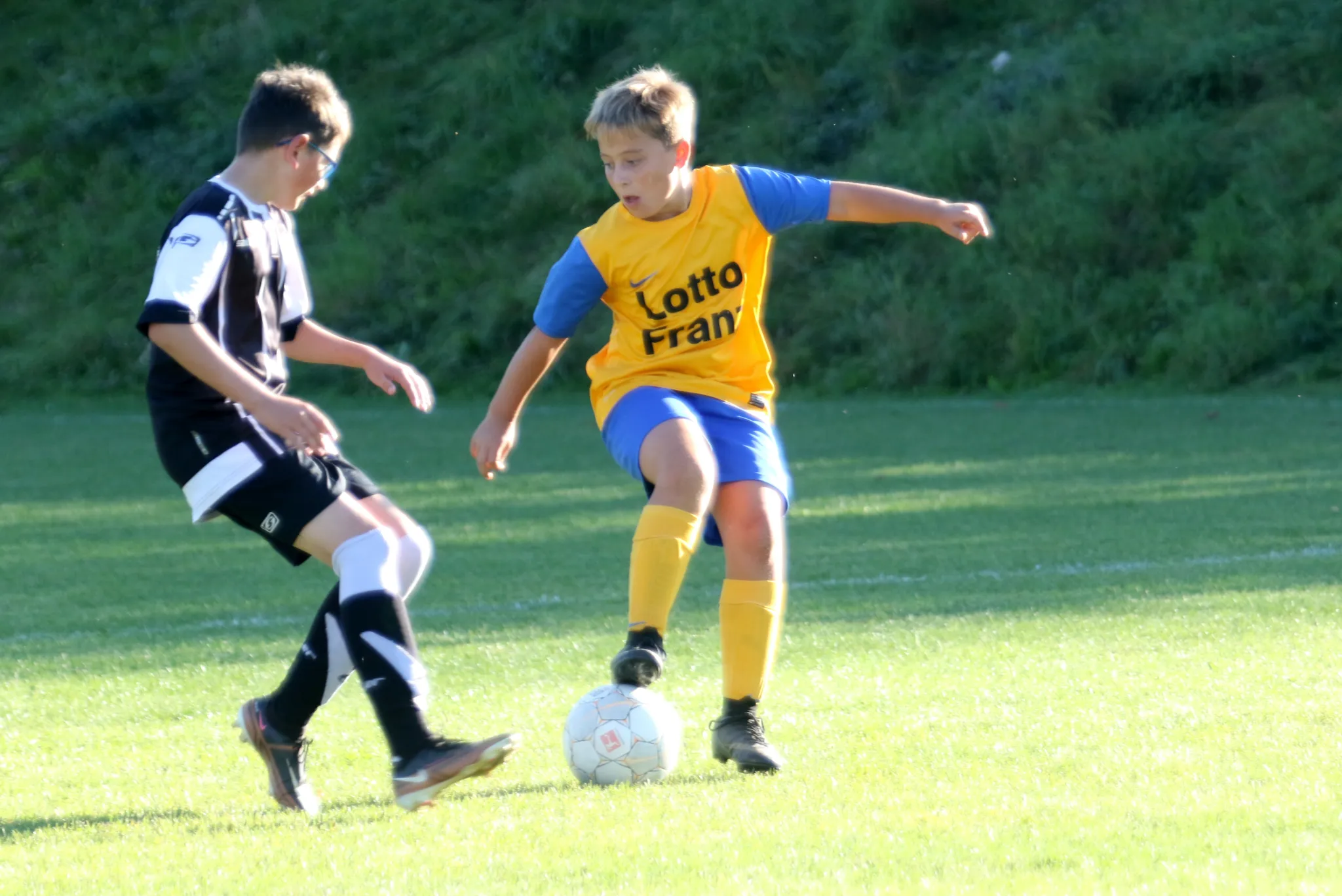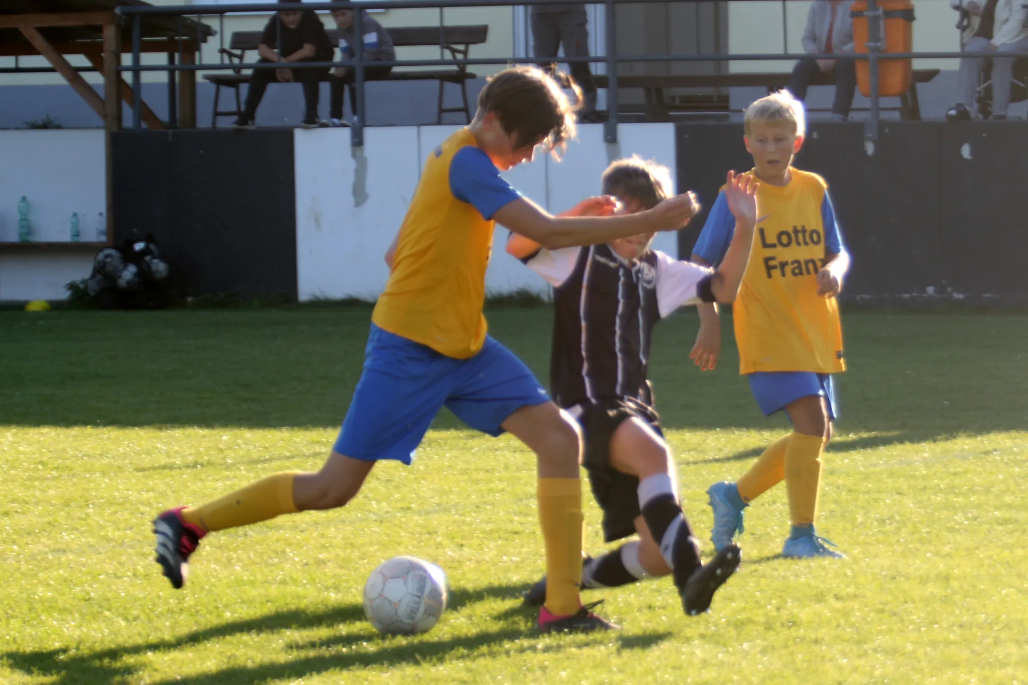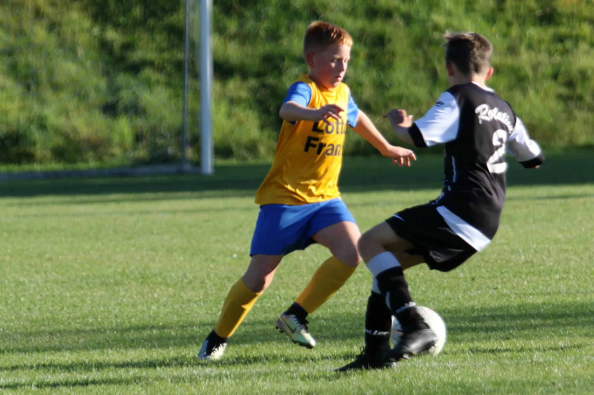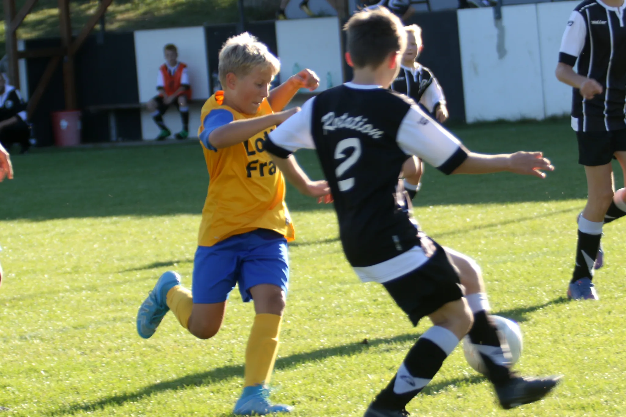 Am heutigen Montag führte uns die Reise in der 1. Pokalrunde zum Derby in den Sportpark Harra gegen die Kids der Rotation Rosenthal. Bei super Fußballwetter und vor einer beachtlichen Anzahl von Zuschauern ging es auf dem satten Grün um den Einzug in die nächste Runde des Kreispokals. Und eigentlich ist die Geschichte dieses Spiels schnell erzählt. Wir erwischten einfach einen rabenschwarzen Tag. In keiner Minute konnten wir so richtig an den starken Auftritt im letzten Punktspiel in Pößneck anknüpfen. Öfters kamen wir in den Zweikämpfen zu spät oder trafen einfach die falsche Entscheidung. Zahlreiche gute Chancen von uns blieben leider ungenutzt. Knapp verfehlten unsere Schüsse das gegenerische Gehäuse, trafen die Latte oder wurden Beute der guten Keeperin der Rotation. Besser machte es unser Gegner, der seine wenigen Chancen eiskalt nutzte und den Ball ingesamt dreimal in unserem Netzt versenkte. Die größte Möglichkeit, um noch einmal zurück in die Partie zu kommen, hatten wir mit einem 9-Meter eine viertel Stunde vor Schluss. Doch passte es heute ins Gesamtbild, dass auch dieser leider nicht im gegnerischen Tor untergebracht werden konnte. Jamies Anschlusstreffer 4 Minuten vor Schluss kam dann leider zu spät, so dass die Rosenthaler unter dem Strich verdient in die zweite Pokalrunde einziehen. Für uns heißt es nun, die richtigen Schlüsse aus dieser Partie zu ziehen und auch weiter im Training vollen Einsatz zu zeigen, um in den nächsten Punktspielpartien wieder erfolgreich zu sein !