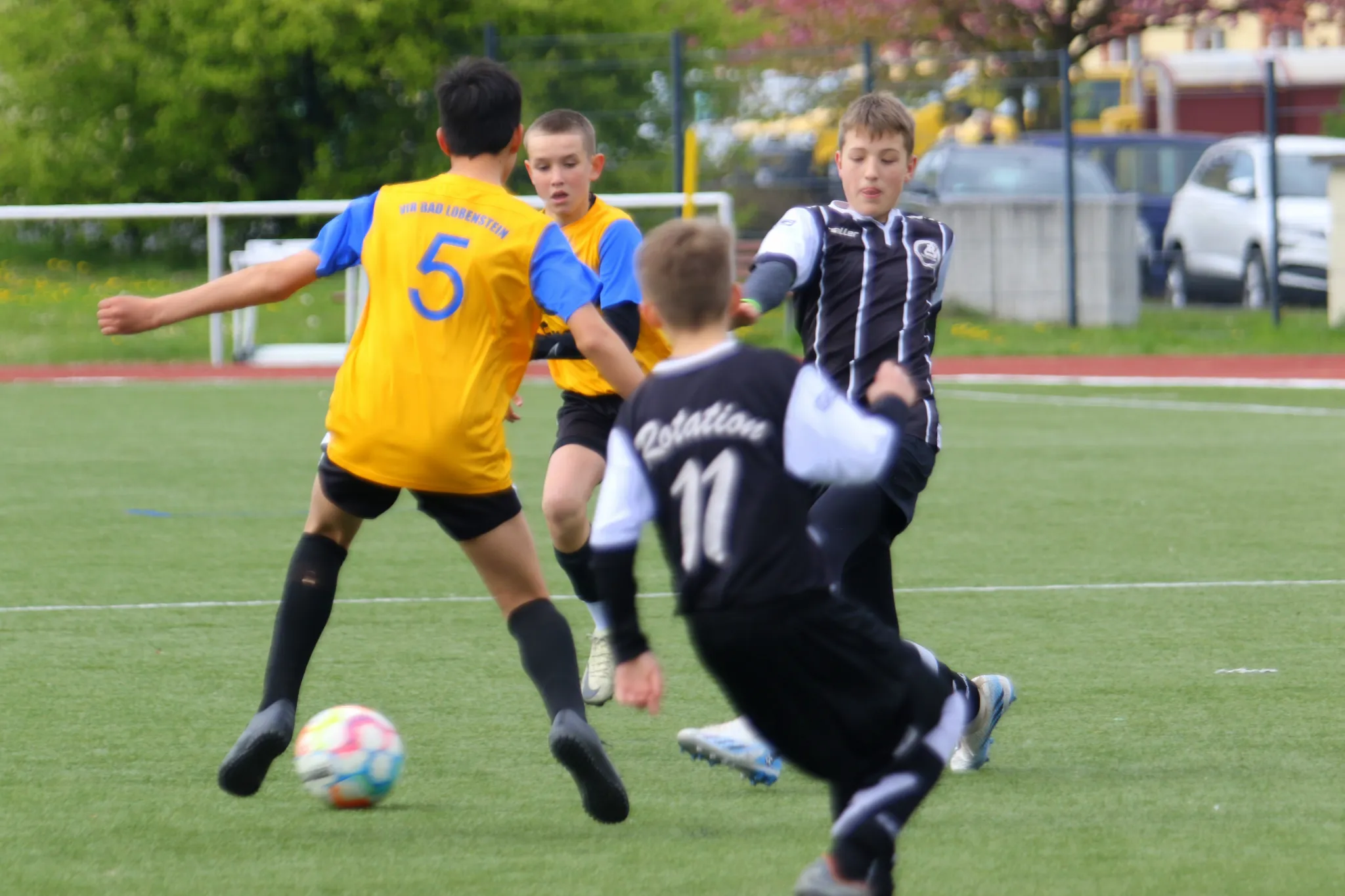 Heute trafen wir uns zum Kräftemessen im Derby mit Rotation Rosenthal auf dem heimischen Kunstrasenplatz. Die Temperaturen waren etwas frisch, aber trotzdem gutes Fußballwetter. Direkt nach Anpfiff legten die Rosenthaler den Ball weit vor und stürmten auf unser Gehäuse, welches zum Glück verfehlt wurde. Das war ein ordentlicher Weckruf für alle Koseltaler. Sofort hellwach, nahmen wir das Spiel in unsere Hand. Die Angriffe auf den gegnerischen Kasten nahmen mehr und mehr Fahrt auf. Bereits in der 6. Spielminute netzte Jamie zur Führung ein. Die Kids aus Harra wollten den Rückstand nicht dulden und kamen mit energischen Gegenangriffen in unsere Hälfte. Da gab es aber keinen Grund zur Sorge, unsere Abwehrmauer hat sich nicht ins Feld locken lassen und konnte so vor der Gefahrenzone beinahe jeden Ball klären, der Rest ist an Gabriel hängengeblieben. In der 13. Minute verlängerte Fabi unseren Vorsprung auf 2:0. Im weiteren Verlauf der ersten Halbzeit waren wir meist in Ballbesitz, konnten auch oft abschließen, aber irgendwie wollte das Runde vor der Pause nicht erneut ins Eckige. Die 2. Spielhälfte begann wie die Erste endete: dominierende Kids aus dem Koseltal. Die Abwehr stand wie eine eins, unser Keeper absolut sicher, Mittelfeld und Sturm nutzten jeden Quadratmeter des Spielfeldes um dem Gegner viele Laufwege zu verschaffen. Belohnt haben sich die fleißigen Kids des VfR für die Mühen mit weiteren 5 Toren und dem Endstand von 7:0. Die Leistung von jedem und das perfekte Zusammenspiel aller brachte uns den verdienten Derbysieg. Fazit: Der Teamgeist und die einzelnen spielerischen Leistungen schaffen eine Mannschaft, die alles erreichen kann.