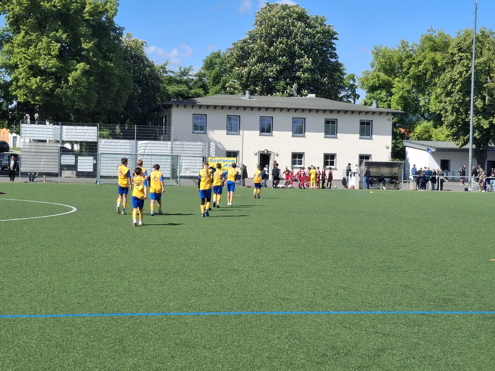 Zum erwartet schwierigen Auswärtsspiel bei Thüringen Jena II reisten gestern die D1 Junioren des VfR. Auf dem tollen Kunstrasen der Sportanlage "Am Jenzig" und bei bestem Fußballwetter fand das Kräftemessen zwischen dem aktuellen Tabellendritten (VfR - 37 Punkte) und dem Tabellenvierten (Jena - 35 Punkte) statt. Die Trainer warnten ausdrücklich vor den spielstarken Saalestädtern, die uns bereits im Hinspiel besiegen konnten. Doch es waren keine 3 Minuten gespielt und schon zappelte der Ball nach einer Unachtsamkeit in unserem (Tor-) Netz. Die Anfangsphase gehörte ganz klar unserem Gegner, der uns läuferisch und mit einer sehr robusten Spielweise deutlich den Schneid abkaufte. Hinzu kamen immer wieder Fehlabspiele, falsche Entscheidungen und kleinere Unachtsamkeiten auf unserer Seite. Nur sehr langsam fanden wir nach und nach in die Partie und konnten froh sein, dass es nur mit dem 1:0 in die Halbzeitpause ging. Dazu kam noch die verletzungsbedingte Auswechslung von Jamie in der 20. Minute, nach einem überharten Einsteigen seines Gegenspielers, welches aber für diesen folgenlos blieb. Nach aufmunterten Worten der Trainer und auch einer kleinen Umstellung kamen wir dann stärker aus der Kabine. WIr hatten deutlich mehr Spielanteile und erarbeiteten uns teils hochkarätige Torchancen gegen die nun tiefer stehenden und verteidigenden Jenaer. Doch entweder scheiterten wir an der eigenen Ungenauigkeit, dem Pfosten oder auch dem starken Gästekeeper. Dazu kamen weiter die teils sehr aggressive Spielweise unseres Gegners und die nicht immer glücklichen bzw. konsequenten Entscheidungen des jungen Schiris. Doch das soll auf keinen Fall als Entschuldigung herhalten, da es vor allem an uns lag, dass wir einfach am gestrigen Tag nie ein richtiges Mittel dagegen und auch nicht zu unserer wahren Leistungsstärke fanden. So stand nach 60 Minuten eine sehr bittere Niederlage zu Buche und dem "Sprung" von Jena an uns vorbei auf Platz 3. Dies gilt es nun schnell zu verdauen, denn bereits am kommenden Mittwoch kommt es zur nächsten Kracherpartie im Heimspiel gegen Steudnitz, einem Favoriten auf den Staffelsieg. Hier sind wir dann auf Wiedergutmachung aus und wollen zeigen, was wirklich in uns steckt !