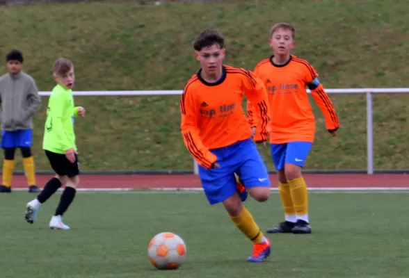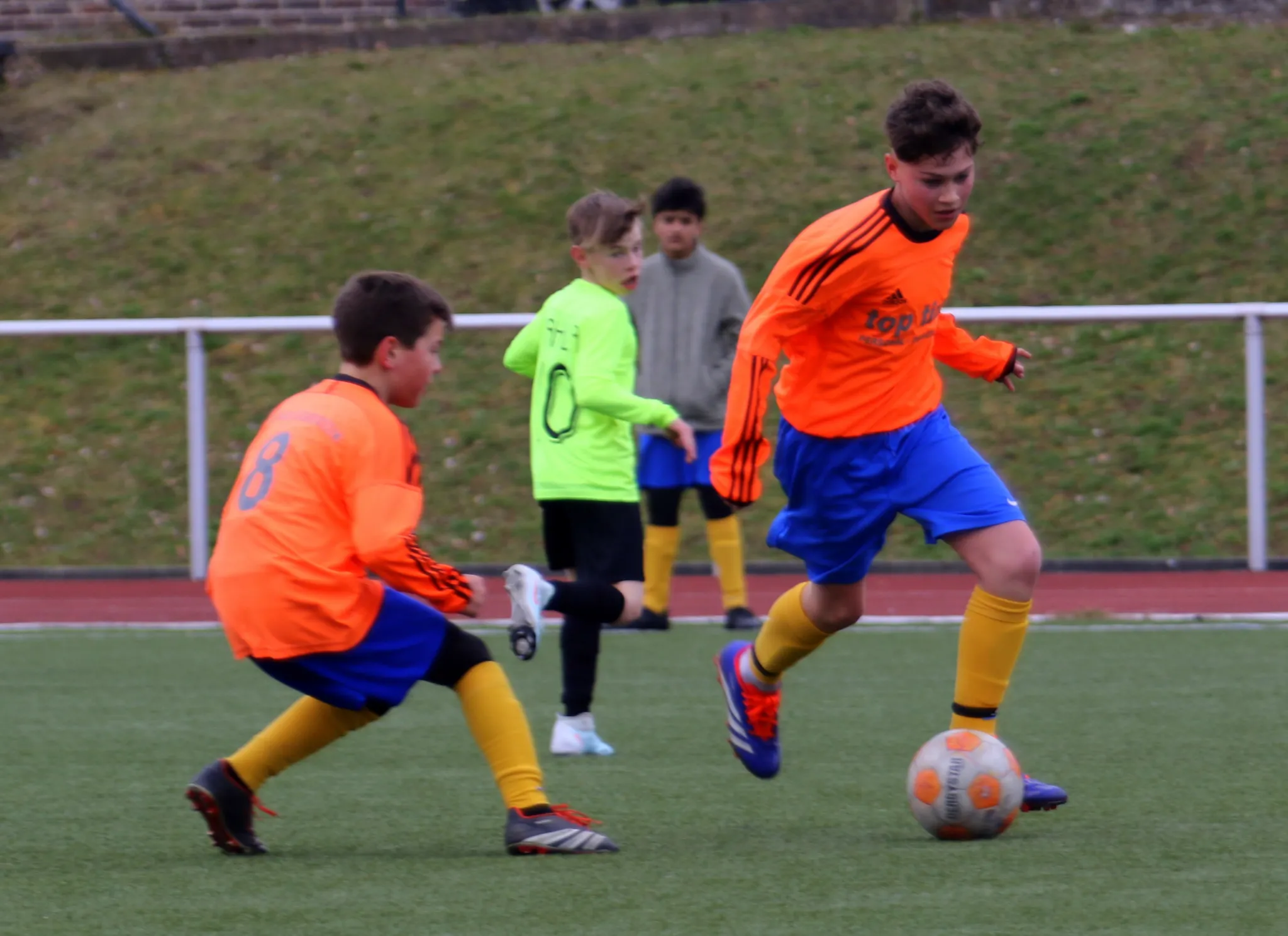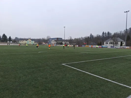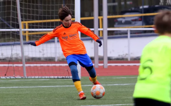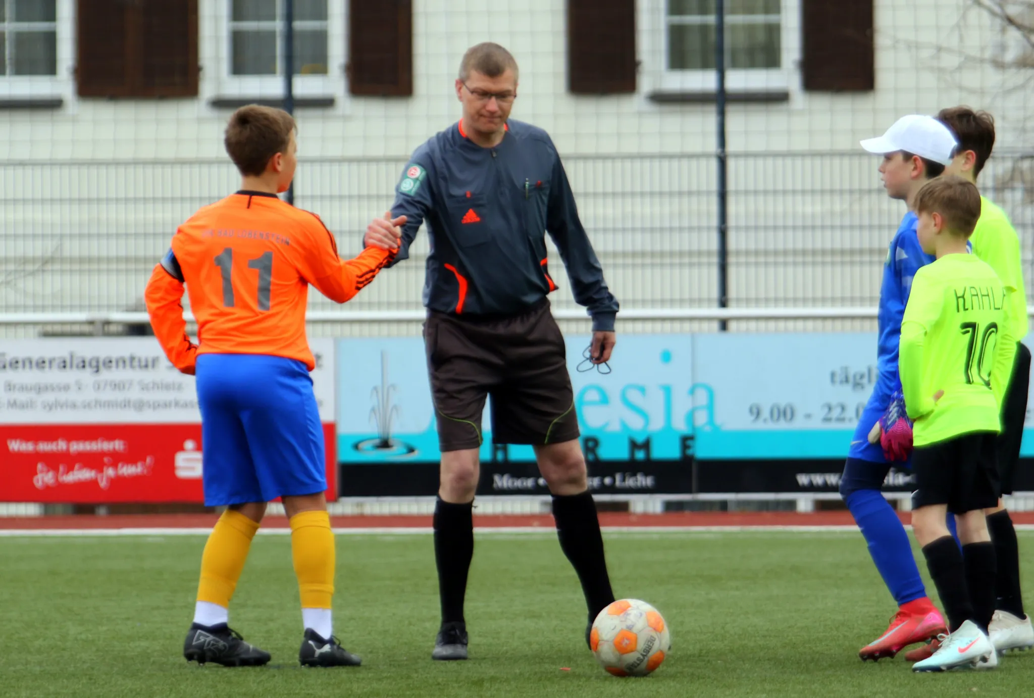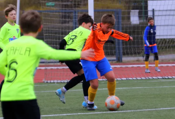 Mit den Kids der BSG Chemie Kahla stellte sich heute am 14. Spieltag der Kreisoberliga der erwartet unangenehme Gegner auf dem Kunstrasen der Poststraße vor. Bereits im Hinspiel erlebten wir eine rassige Partie mit einem ständigen Auf und Ab, zeitweise einem Unterzahlspiel von uns und schlussendlich einer Punkteteilung der Teams. Direkt nach dem Anpfiff des Schiedsrichters Enrico Hellfritzsch, entwickelte sich eine rassige Partie mit hoher Geschwindigkeit bei beiden Mannschaften. Gerade die Offensive der Kahlaer mit ihren quirligen Spielern ließ unsere Defensivreihe Schwerstarbeit verrichten. Aber auch wir setzten unsere Akzente nach vorne, so dass die zahlreichen Zuschauer ein wirklich gutklassiges D-Junioren-Spiel zu sehen bekamen. Es dauerte ganze 15 Minuten bis es soweit war und Lenny mit einem leicht abgefälschten Schuss das erlösende 1:0 erzielen konnte. Kahla davon wenig beeindruckt und weiter brandgefährlich-doch die NULL hielt. Dann bewies Jamie wieder einmal seinen Torriecher. Julians Schuss konnte noch abgeblockt werden, doch war der gute Kahlaer Keeper beim Nachschuss machtlos. Leider musste Jamie kurz darauf nach einem hart geführten Zweikampf verletzt das Feld verlassen - die Geschichte aus dem Hinspiel wiederholte sich damit. Mit der 2-Tore-Führung ging es dann in die Halbzeit. Vorgabe der Trainer: keinen Deut nachlassen, die ersten Minuten nach Wiederanpfiff ohne Gegentor überstehen und möglichst mindestens einen weiteren Treffer erzielen. Das mit dem Gegentreffer klappte leider nicht ganz so, denn in der 34. Minute erzielten die Kids aus Kahla nach einem wirklich klasse vorgetragenen Angriff unhaltbar den Anschlusstreffer. Doch wie gefestigt wir derzeit sind, zeigten wir mit unserer Antwort, nämlich den 3:1 durch Julian nur zwei Minuten später. Und als Hans nur 4 Minuten darauf mit einem Knaller aus 18 Metern das Ergebnis weiter hochschraubte, merkte man schon einen kleinen Knacks bei unserem Gegner. Louis mit einem Strafstoß, sowie die eingewechselten Karim und Niamat stellten schließlich den 7:1 Endstand her. Mit diesem Erfolgserlebnis festigten wir unseren Platz unter den besten 4 Mannschaften der Tabelle und verabschieden uns erstmal für ein paar Wochen vom Punktspielbetrieb. Die Ansetzung und anstehenden Osterferien sorgen dafür, dass wir erst am 4.5. im Heimspiel gegen Ottendorf wieder um die begehrten Ligapunkte spielen werden.