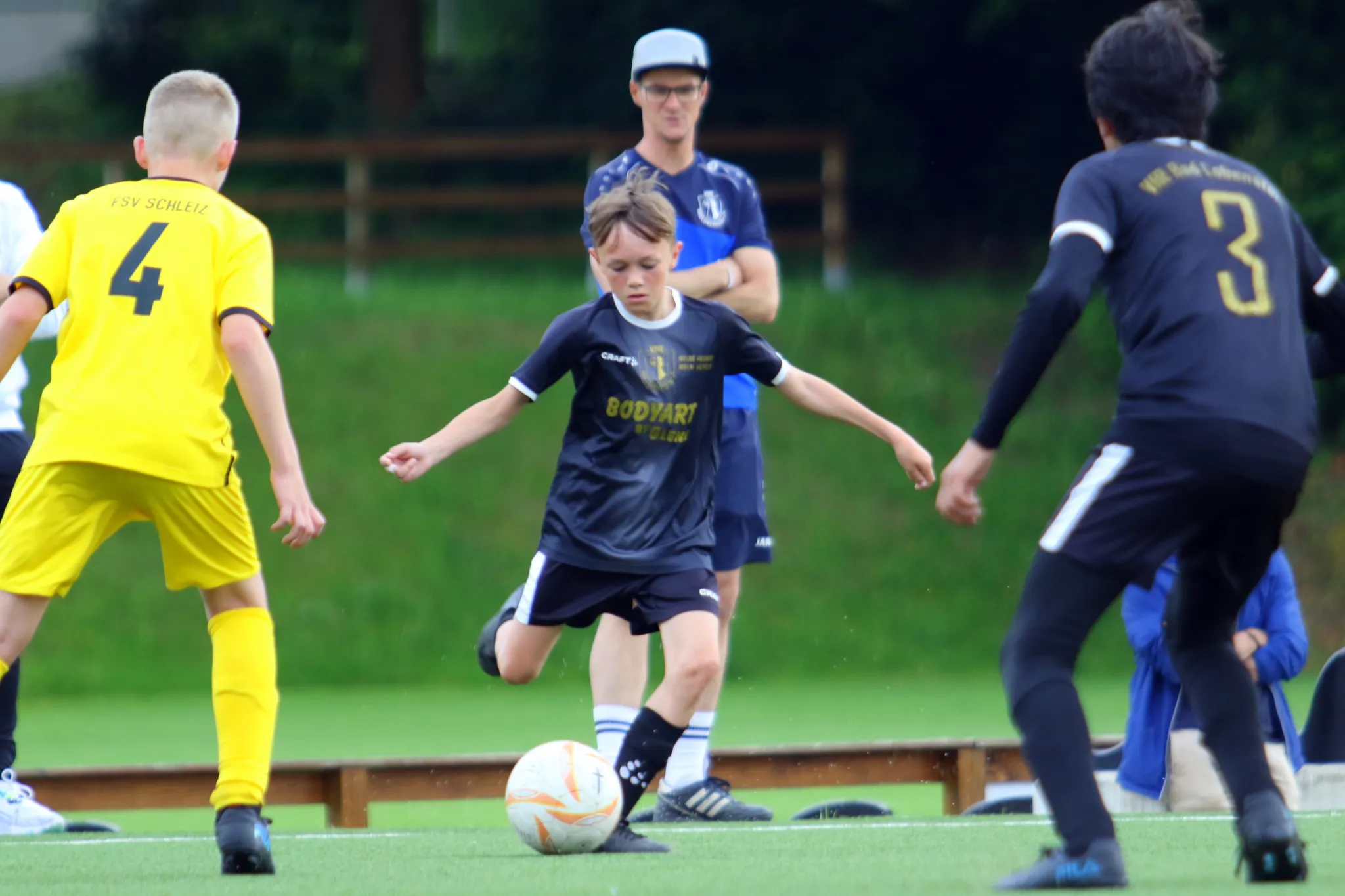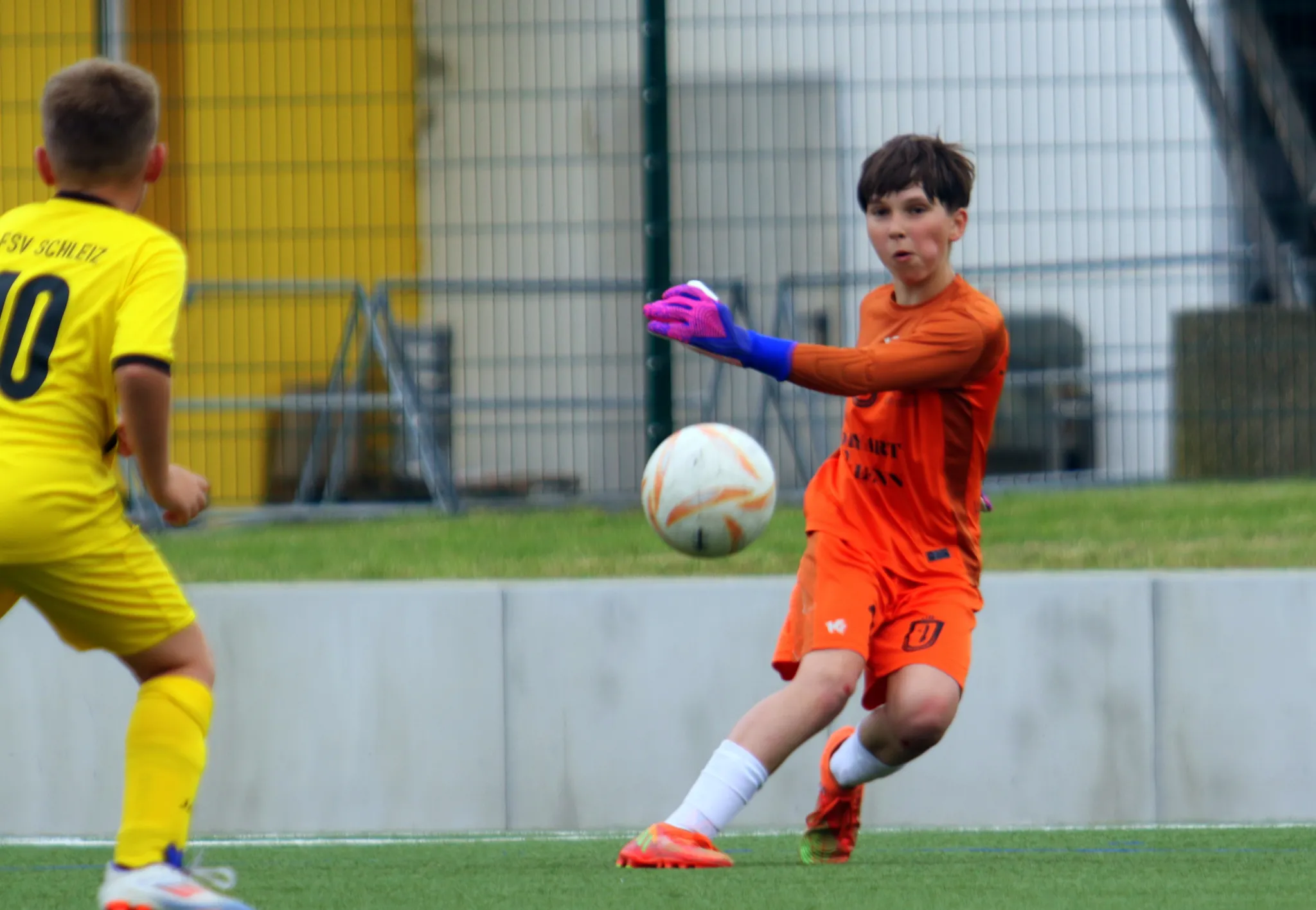 Am gestrigen Tag stand das letzte Spiel der Saison 24/25 für die D2-Junioren des VfR auf dem Programm. Dabei ging es in die Rennstadt Schleiz zur Auswärtspartie bei den Kids des FSV. Dass das keine leichte Aufgabe für uns werden würde, ließ das knappe Hinspielergebnis (1:0 Heimsieg) durchaus erahnen. Und so war es dann schließlich auch. Die Zuschauer sahen auf dem Kunstrasenplatz der "Sportanlage Am Fasanengarten" ein tolles D-Junioren-Spiel, in welchem u. a. mehrmals die Führung wechselte. Wir starteten hierbei furios ins Match und gingen direkt in der 4. Minute durch Niamat in Front. Durch kleinere Nachlässigkeiten und immer stärker werdende Schleizer wechselte dann die Führung zu deren Gunsten. Mit 1:2 aus unserer Sicht ging es zum Pausentee. Nach ein paar "wachrüttelnden" Worten und kleineren Umstellungen spielten wir dann eine überaus starke zweite Halbzeit. Wiederum Niamat konnte dabei eine seiner zahlreichen Chancen an dem Tag zum Ausgleich nutzen. Dann war es schließlich dem eingewechselten Luca (Sell) vorbehalten, sehenswert den Siegtreffer und das letzte Tor der Saison zu erzielen. Mit diesem verdienten Auswärtssieg im letzten Spiel zogen wir den Schlussstrich unter eine äußerst erfolgreiche Spielzeit 24/25. Von insgesamt 9 Mannschaften belegen wir in der Abrechnung den zweiten Platz hinter den alles überragenden, ungeschlagenen und schon länger feststehenden Staffelsieger aus Orlatal. Herzlichen Glückwunsch dazu !!! Den (inoffziellen) Titel des "Vizestaffelsiegers" hätten im Vorfeld der Saison unserem Team wohl nur die kühnsten Optimisten zugetraut. Entsprechend stolz sind die Trainer deshalb auf "ihre" Spieler, deren gezeigte Leistung (-en) und den errungenen Erfolg für sich, sowie dem Verein VfR Bad Lobenstein. Ein großer Dank geht in dem Zusammenhang auch an alle Unterstützer, Sponsoren, Angehörige, Eltern und Fans. Ohne Euch alle wären solche Dinge nur schwerlich möglich ! Ab der kommenden Saison 25/26 starten wir dann in das große "Abenteuer C-Junioren". Mal schauen, wie uns der "Sprung" vom Klein- aufs Großfeld, mit allen damit einhergehenden Begleiterscheinungen (u. a. 11 statt 8 Spieler, Abseits, große Tore, längere Spielzeit...), gelingen wird. Wir dürfen gespannt sein. Bis dahin heißt es aber jetzt erstmal gebührend feiern (lassen) !!!
