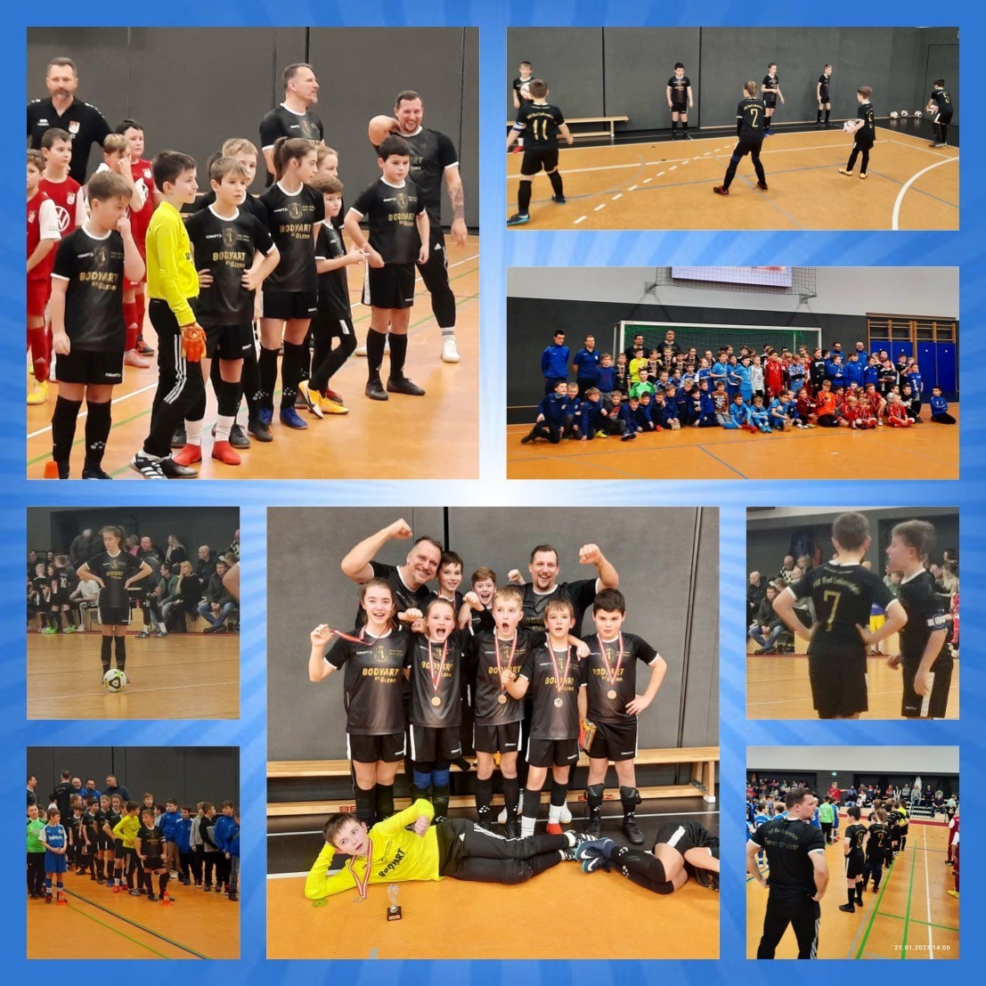 Am gestrigen Tag ging die Reise der E-Junioren des VfR in die tolle 2-Felderhalle nach Pausa zum dortigen hochkarätig besetzten Wintercup des FC Motor Zeulenroda. Insgesamt "kämpften" 8 Mannschaften im 1:4 während der 10 Minuten Spielzeit um die begehrten Pokale und Medaillen. Neben 2 Teams des Gastgebers und dem VfR, gaben sich noch die Mannschaften von Blau-Weiß Neustadt, Blau-Weiß Auma, 1. FC Greiz, Lusaner SC und Rot-Weiß Erfurt ein "Stell-Dich-Ein". Wir bestritten gleich das Auftaktmatch im Turnier gegen Neustadt. Hier konnten wir uns für die Niederlage in dem spannenden Halbfinale zwischen den gleichen Teams eine Woche zuvor in Schleiz "revanchieren" und siegten mit 5:2. Im zweiten Spiel trafen wir dann auf die erste Vertretung des FC Motor Zeulenroda. Diese "überrannten" uns förmlich in den ersten Minuten und führten schnell mit 4:0. Leider musste dann bei diesem Spielstand und nach einem heftigen Foul an dem alleine aufs Tor zusteuernden Jamie dieser verletzt das Spielfeld verlassen. Doch wir zeigten eine tolle Moral und verkürzten anschließend auf 2:4, ehe Zeulenroda dann mit dem 5:2 die Partie endgültig für sich entschied. Im letzten Spiel gegen Auma wollten wir dann den zweiten Tabellenplatz hinter den verlustpunktfreien Zeulenrodaern und somit den Halbfinaleinzug sichern. Dies gelang uns dann auch mit einem souveränen 4:1. In der spannenden Gruppe B entschied sich dann erst im letzten Spiel unser Gegner. Greiz schaffte ein 1:0 in einem nervenaufreibenden Spiel gegen den Lusaner SC und wurde damit Gruppenerster vor den Kids aus der Landeshauptstadt. Diese wurden dann im ersten Halbfinale von Zeulenroda mit 4:1 besiegt. Ein spannendes und lange Zeit offenes Halbfinale gegen Greiz, bei dem wir uns, wie eigentlich im ganzen Turnier mehrfach beim überragenden Ben im Tor bedanken konnten, entschieden wir dann schließlich verdient mit 2:0. So wartete im Finale in der fast "ausverkauften" Pausaer Halle wieder die erste Mannschaft des FC Motor Zeulenroda auf uns. Doch anders als im Gruppenspiel, hatten wir uns diesmal besser auf die Spielweise unseres Gegners eingestellt und gingen sogar mit 1:0 in Führung. Das wollten die Zeulenrodaer so natürlich nicht hinnehmen und drehten das Spiel zum 2:1. Jetzt waren wir wieder am Zug und glichen zum verdienten 2:2 aus. Letztendlich setzte sich dann Zeulenroda durch und Ben, der sich trotz der direkt hinter seinem Tor, "rein zufällig befindlichen" (wahrscheinlich war die Bank hinter dem eigenen Tor zu unbequem ;-) ) und sich lautstark bemerkbar machenden Kids der zweiten Zeulenrodaer Mannschaft nicht aus der Ruhe bringen ließ, wurde noch zweimal bezwungen. Ein tolles und spannendes Finale zwischen zwei Teams auf zumindest sportlicher Augenhöhe. Alle Kids des VfR können sehr stolz auf sich und ihre Leistung sein. So landete man, auch Dank der Unterstützung der zahlreichen mitgereisten Mamas und Papas, nun auch im vierten Hallenturnier in Folge auf dem "Treppchen". Nächses Wochenende wird erstmal eine kleine Ruhepause eingelegt, bevor es dann nach Kahla zum "Griesson-Hallencup" geht. Der VfR spielte mit: Ben/Tor, Hannes, Jule (2 Tore), Sunny, Julian (3 Tore), Louis/Kapitän (3 Tore), Paul (1 Tor), Jannick, Jamie (6 Tore)
