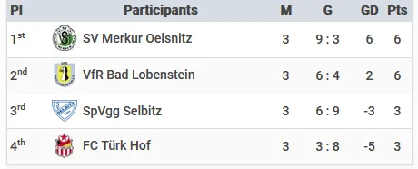 Die 12 teilnehmenden Mannschaften wurden in 3 Vierergruppen gelost. Dabei erwischte man in Gruppe A starke Konkurrenz. Die Gruppengegner lauteten SV Merkur Oelsnitz, FC Türk Hof und Gastgeber SpVgg Selbitz.