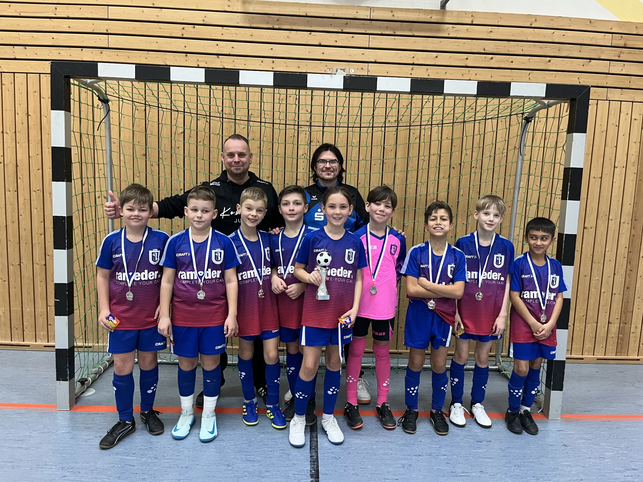 Acht Vereine waren eingeladen und angereist, sodass in zwei Vierergruppen gespielt wurde. Bereits im ersten Turnierspiel trafen wir auf die TSV Gahma und konnten mit 3:0 (Noa Heyder, Mohammad Arabzadah und Florian Neumeister) einen erfolgreichen Auftakt hinlegen. Auch das zweite Duell gewann man mit 1:0 (Jelena Straubel) gegen die SV Eintracht Eisenberg, auch weil Mika Straubel in bravouröser Manier einen Strafstoß parierte, sodass schon ein Remis gegen Ebersdorf I für das Halbfinale gereicht hätte. Und auch genau dieses Unentschieden, nach Rückstand, holte man mit einem 1:1 (Noa Heyder).