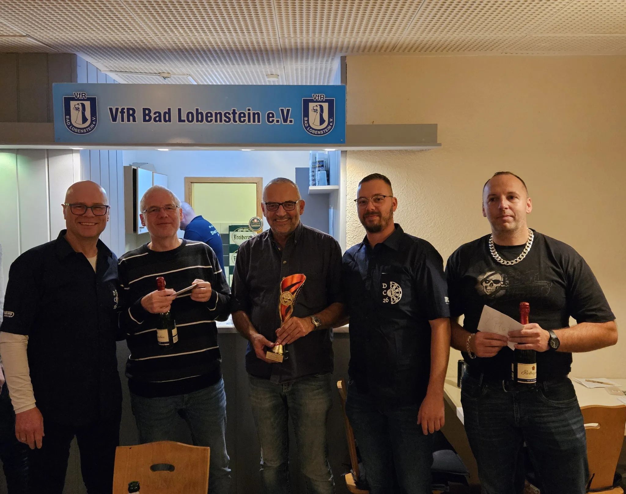 Der erste Preisskat der Dartsektion DC26 wurde ein voller Erfolg. So trafen sich 35 Teilnehmer zum Skat in der Gaststätte des VfR Bad Lobenstein im Koseltal und reizten um die Wette. Nach zwei 48-er Runden setzte sich am Ende Peter Hoh mit 2.763 Punkten nur denkbar knapp vor Kay Weiß durch, welcher nur 4 Punkte Rückstand hatte. Den dritten Platz belegte mit 2.725 Punkten Andreas Thiem. Die einzige weibliche Teilnehmerin, Doreen Bornmann, belegte am Ende einen beachtlichen 15. Platz.